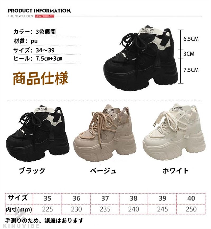レディーススニーカー 厚底 ハイヒール 靴 通販 ブラック ベージュ ホワイト 34 35 36 37 38 39