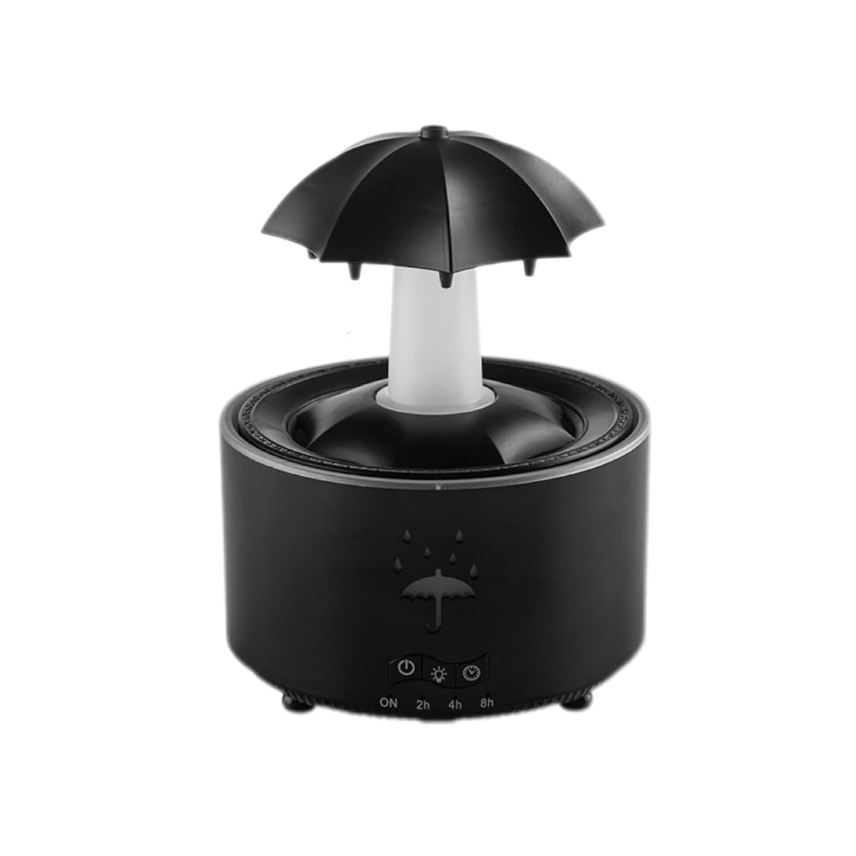 アロマ加湿器 レイン加湿器 傘ディフューザー 傘型加湿器 インテリア 加湿器 リモコン付 タイマー設定 家 装飾用 読書 瞑想 個人用 寝室 部屋 コンパクト 乾燥対策 床置き ブラック お手入れ簡単