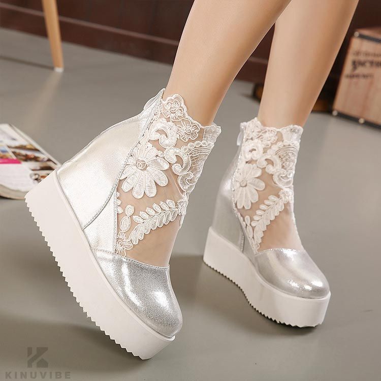 11cm インヒールスニーカー 刺繍 靴 特集 ブラック ホワイト シルバー 34 35 36 37 38 39