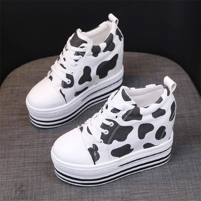 3色入荷 レディーススニーカー ハイヒ 靴 通販 ブラック レオパード柄 牛柄 34 35 36 37 38 39