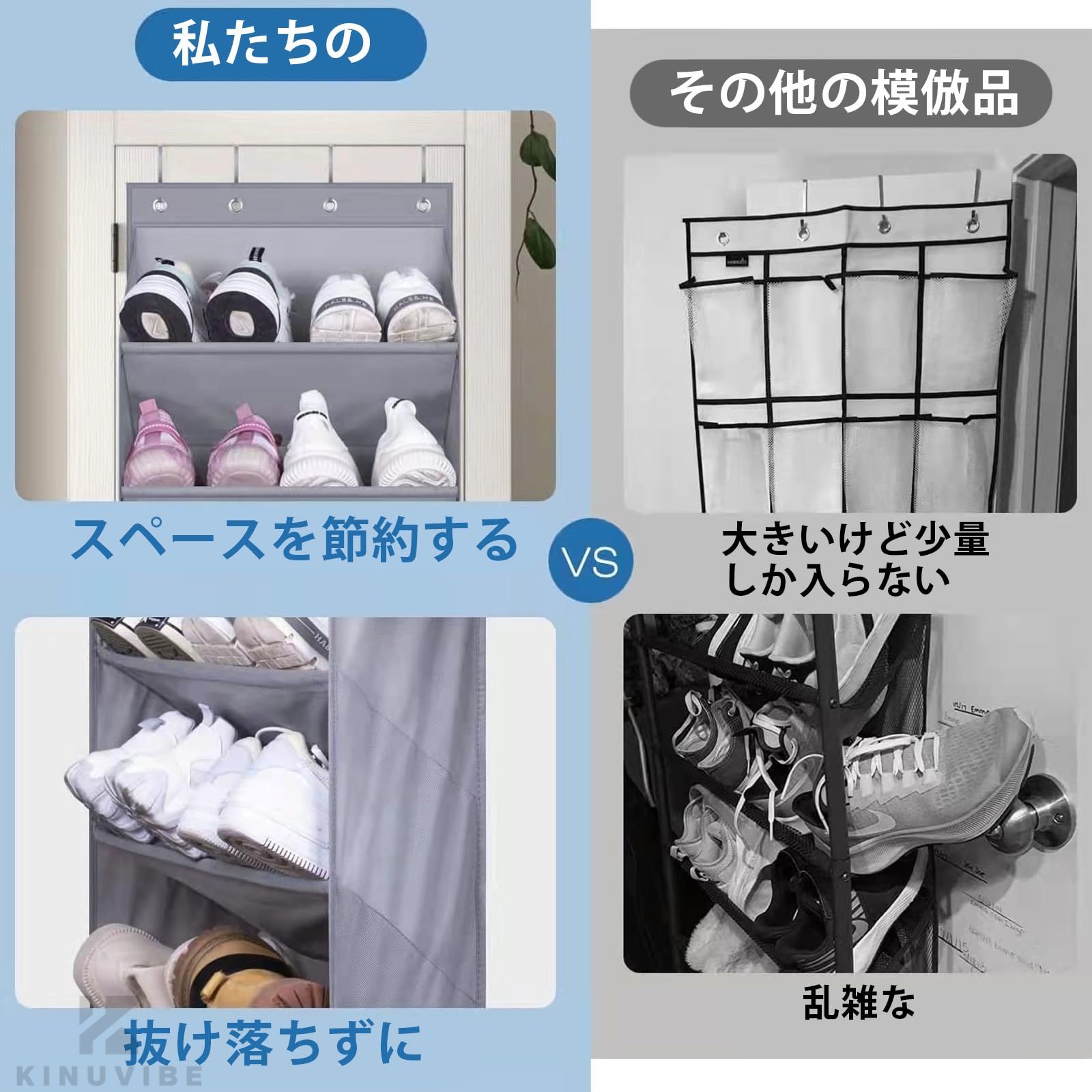 ドア用シューズラック 靴オーガナイザー グレー ブラック 6層 8層