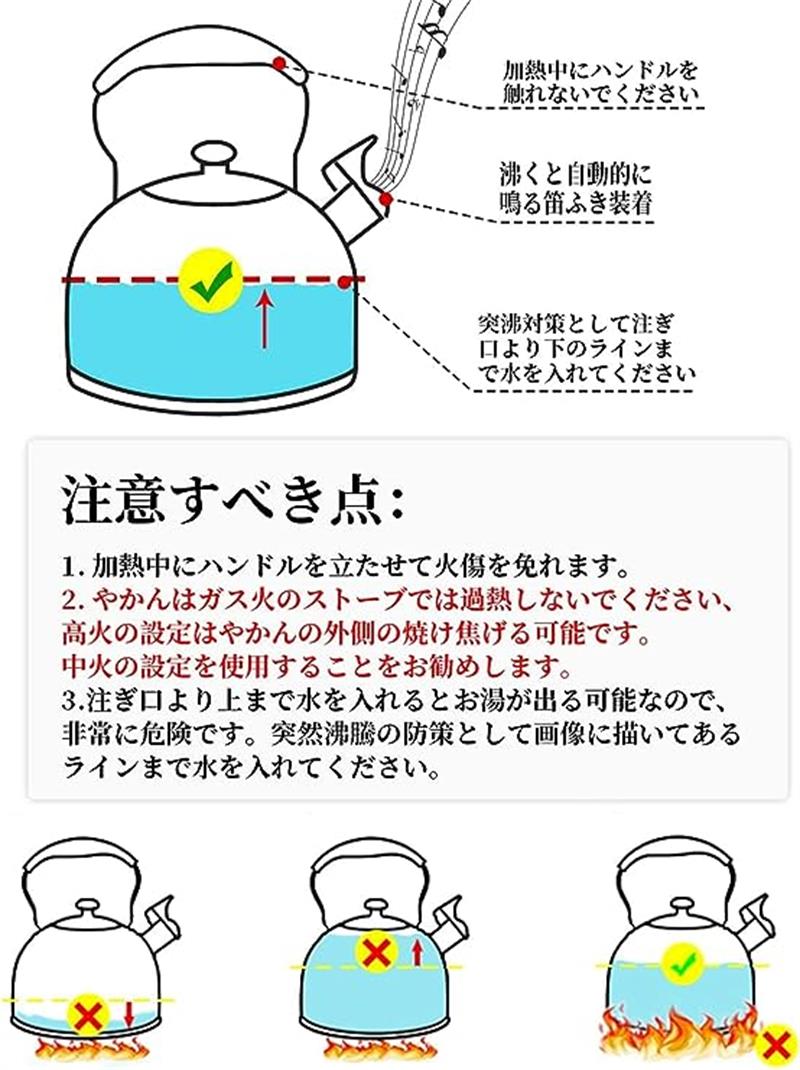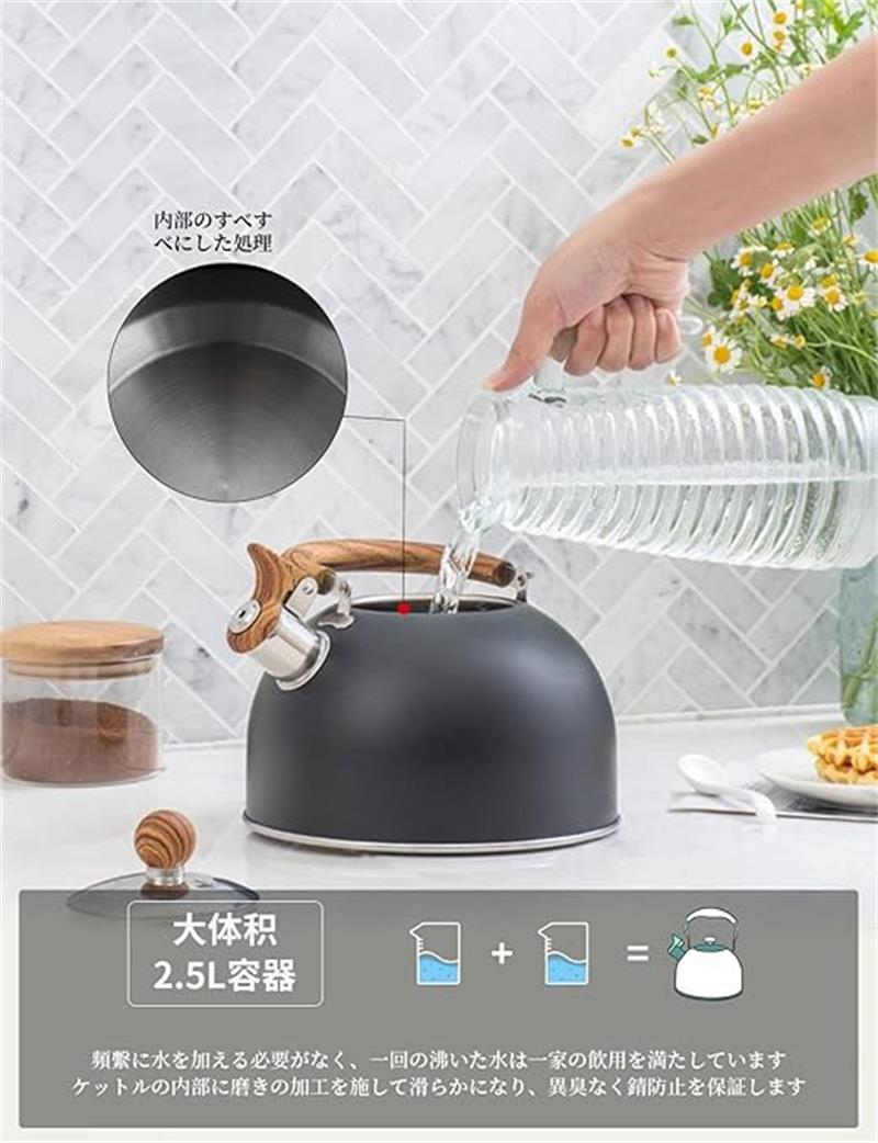 やかん 2.5L 笛吹きケットル ステ ブラック ホワイト