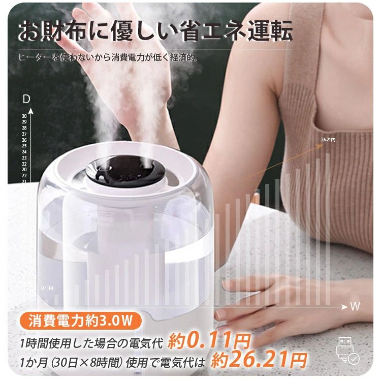 加湿器 大容量 超音波加湿器 上部給水 ホワイト ベージュ