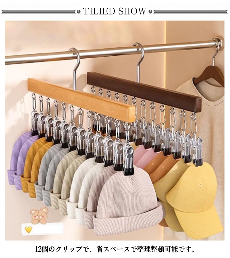 帽子収納 クリップ ハンガー 帽子ハン 日用品雑貨 文房具 手芸 早い者勝ち ブラウン ナチュラル色