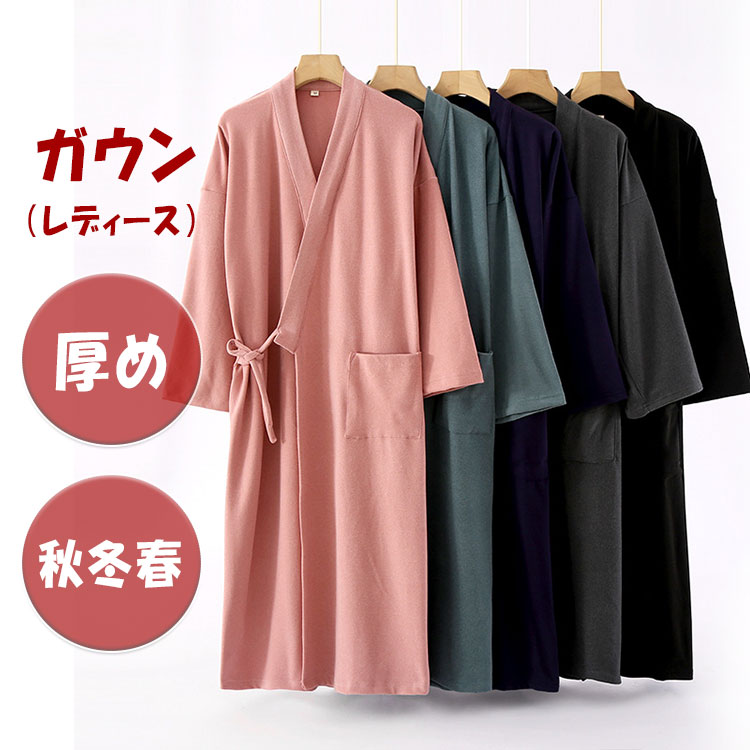 ガウン レディース ゆったり 柔らか レディース ナイトウェア ルームウェア バスローブ 大人気! ピンク グリーン グレー ブラック ネイビー M L XL