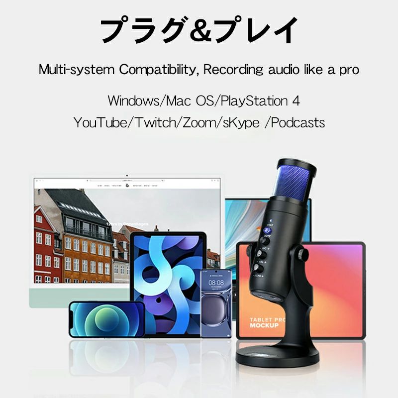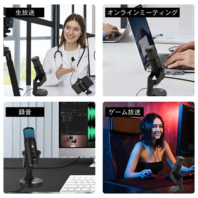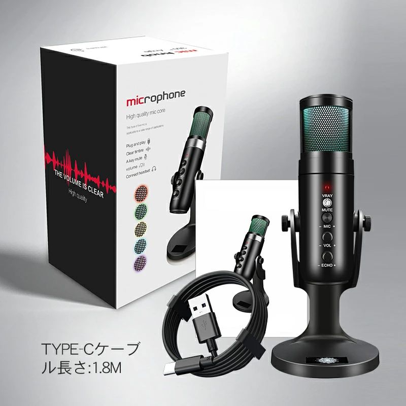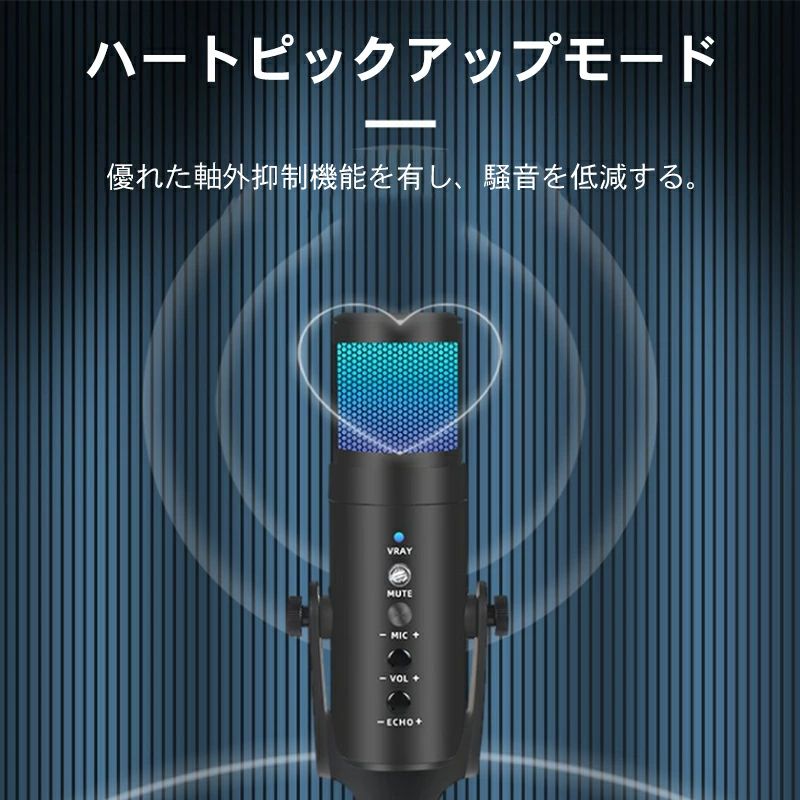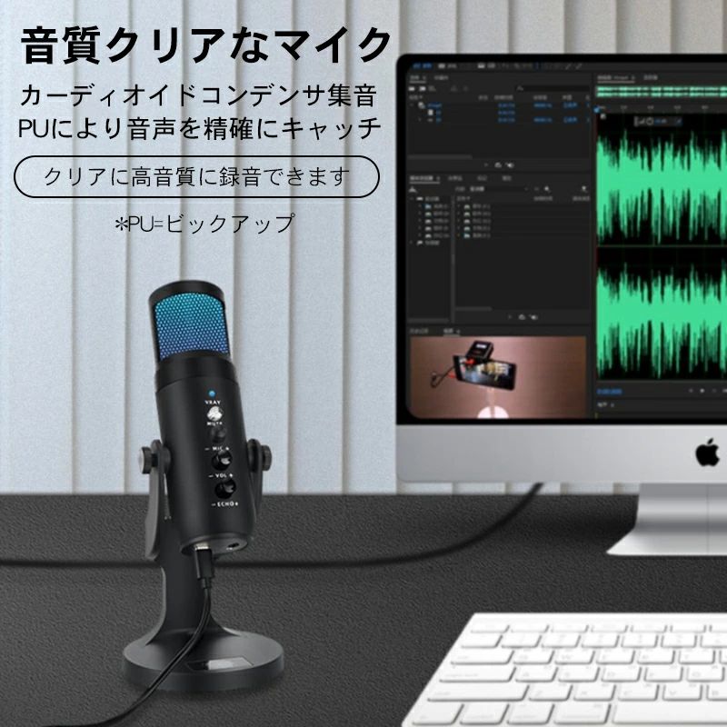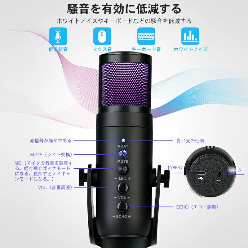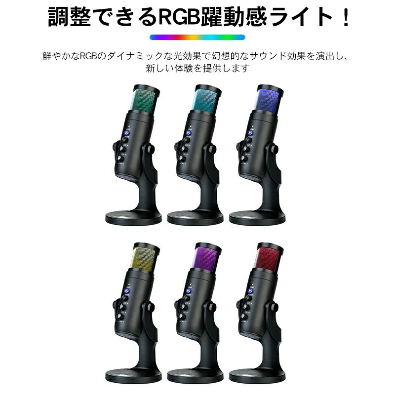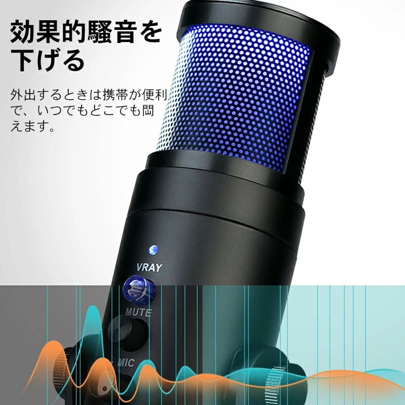 マイク コンデンサーマイク pcマイク usb RGB ライティング コンデンサー ノイズ軽減 USB 配信用マイク ゲーム実況 配信セット 単一指向性 マイクセット 在宅勤務 録 テレワーク