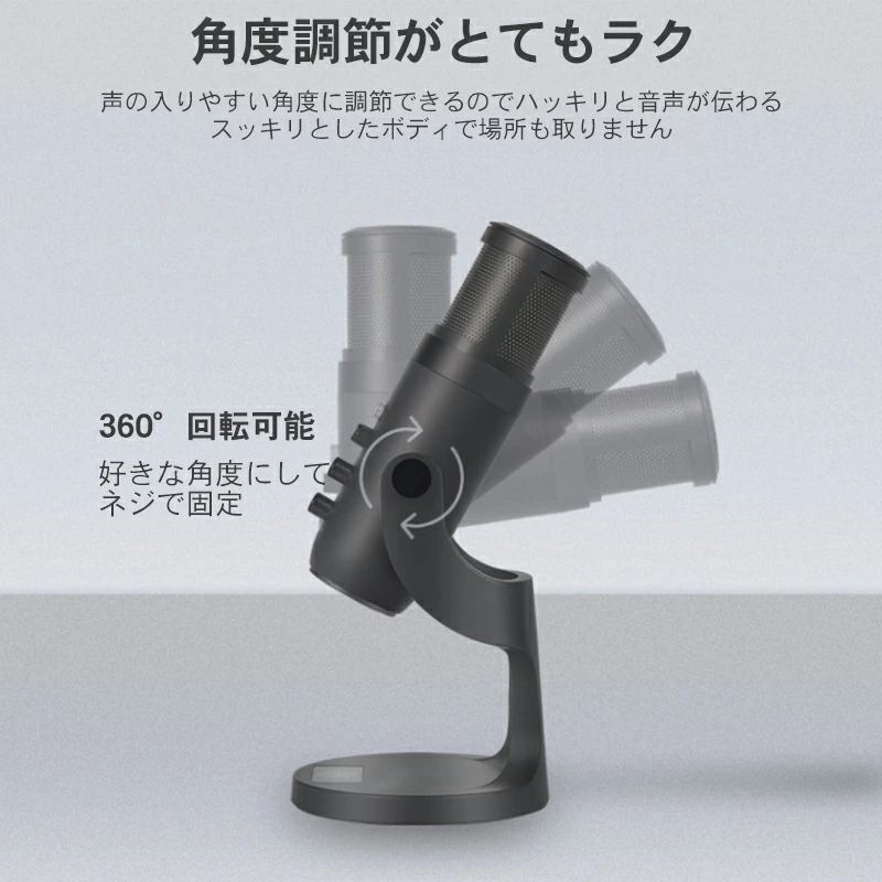 マイクスタンドが付属しています。個人好みにより、卓上のスペースを最大程度で利用できます。コンパクトで収納、外出など場合でも、持ち運びしやすい!