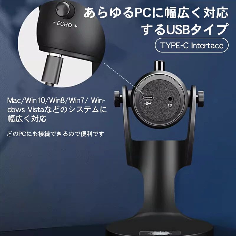 USB端子搭載のPCマイクは、パソコンやデスクトップなどに直接繋げられます。Youtube、Zoom、録音やゲーム実況を始めている初心者に最適です。ゲイン調整ノブが搭載し、状況に応じて音量の大きさを調整できます。