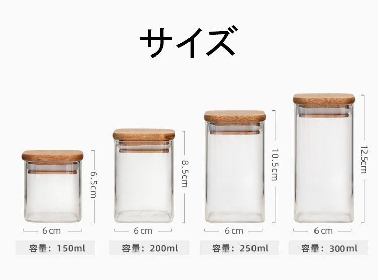ガラスキャニスター 天然木の蓋 珈琲キ 保存容器 調味料入れ 保存容器 キャニスター 超目玉商品 写真色(150ml) 写真色(200ml) 写真色(250ml) 写真色(300ml)
