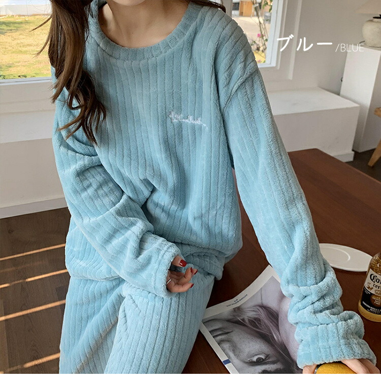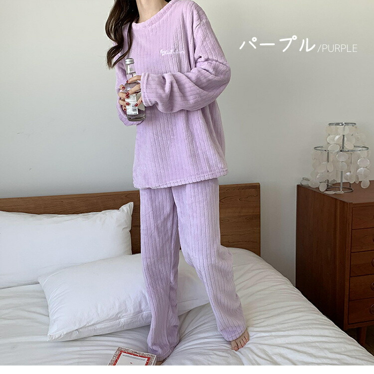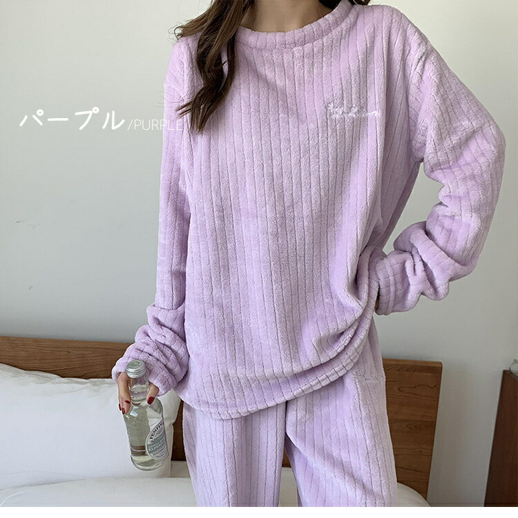 ルームウェア レディース もこもこ 冬 レディース ナイトウェア ルームウェア ルームウェア 上下セット 通販 ブルー グレー ホワイト パープル ピンク