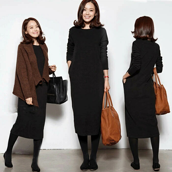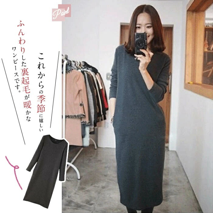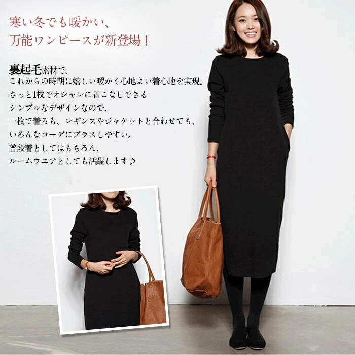 裏起毛 ワンピース ロングワンピース ワンピース 超目玉商品 黒 グレー M L XL 2XL 3XL