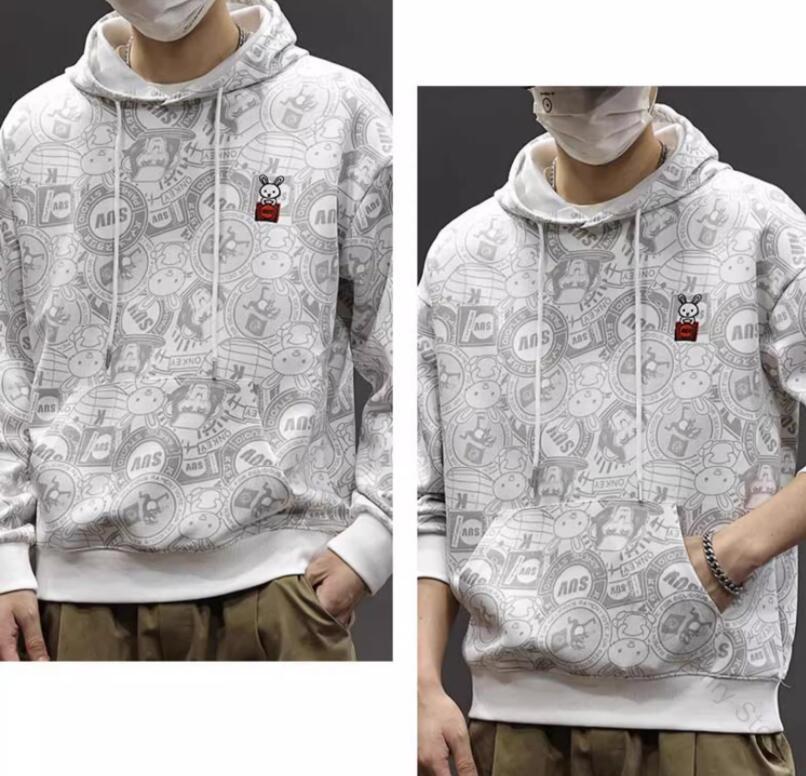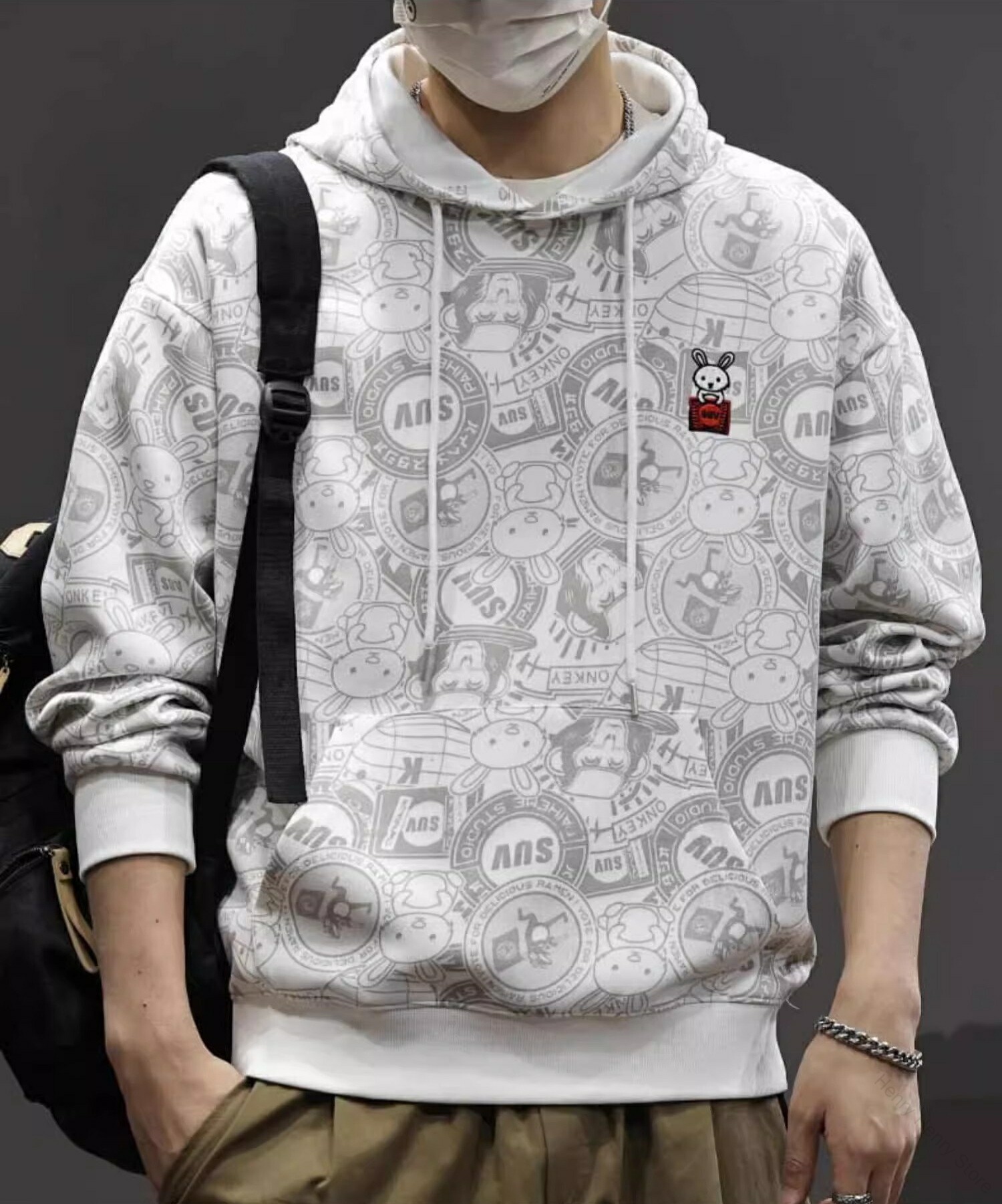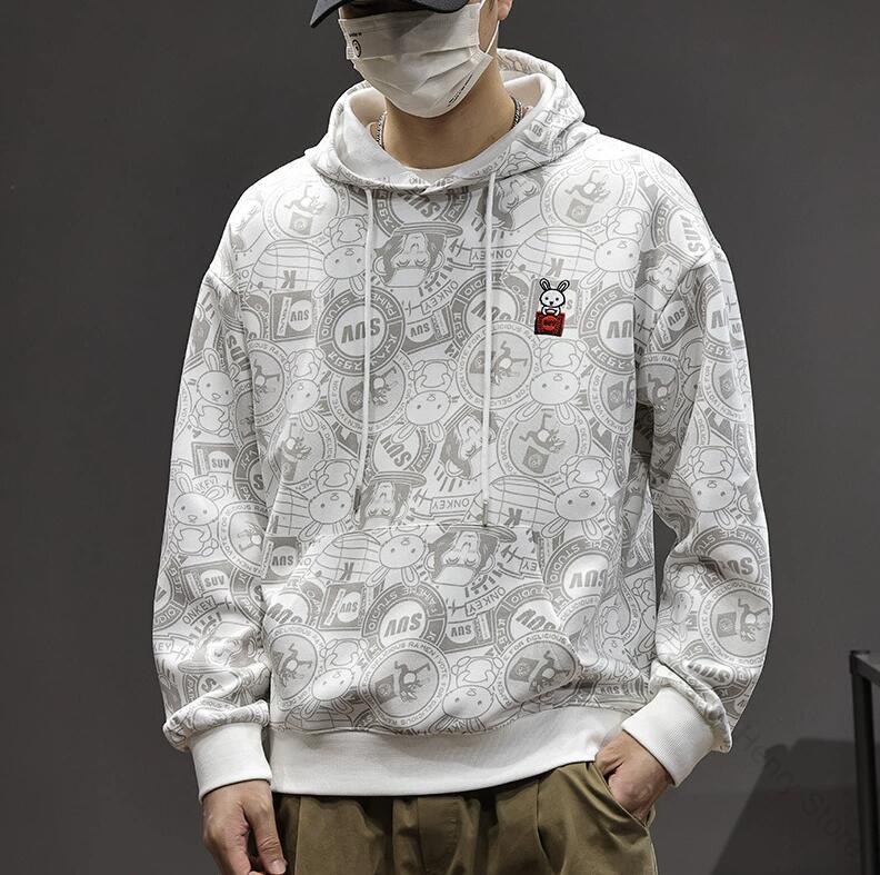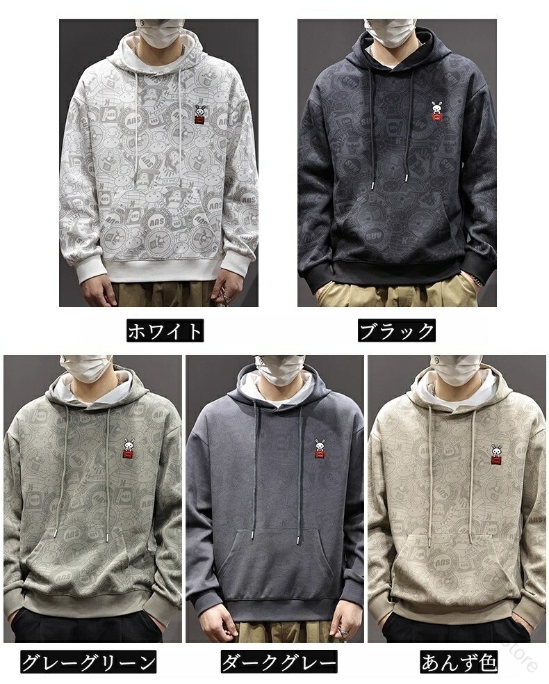メンズパーカー 総柄フーディー うさぎ トップス パーカー 新登場! ホワイト グレーグリーン ブラック ダークグレー あんず M L XL 2XL 3XL 4XL
