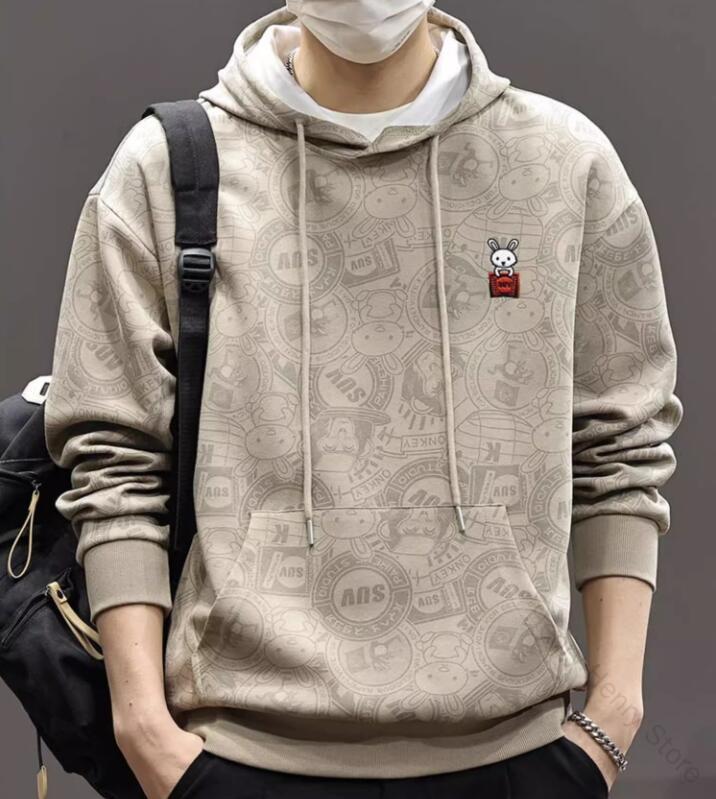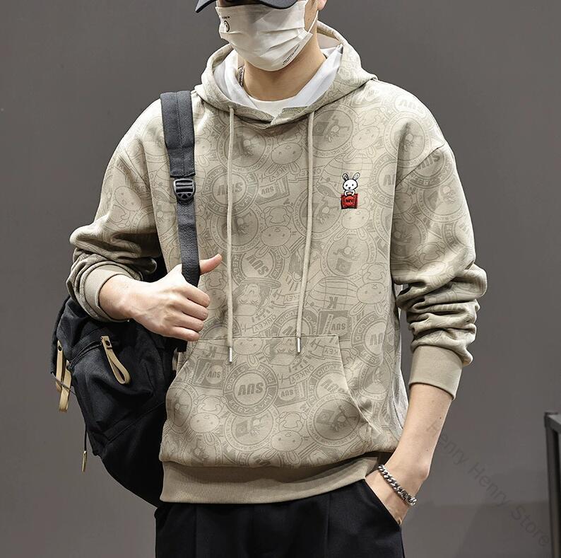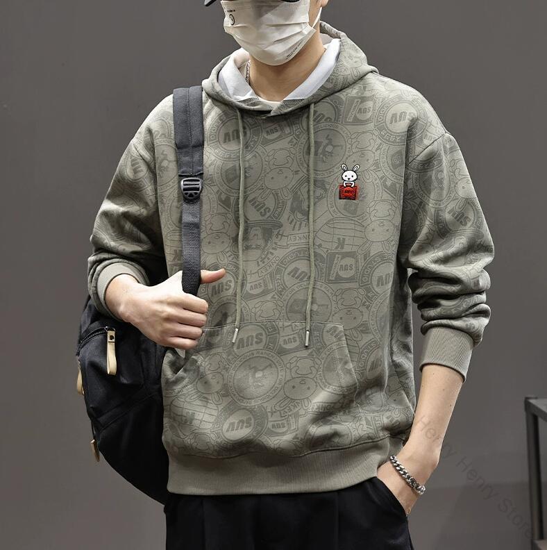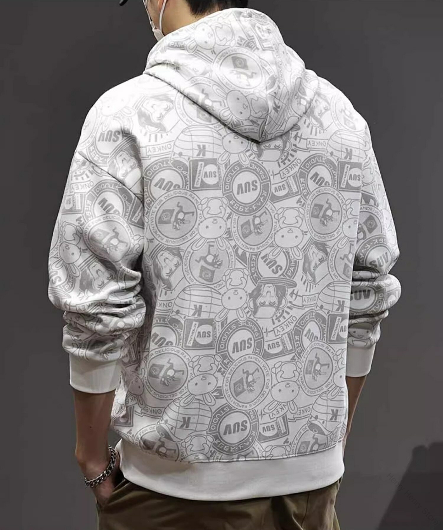 メンズパーカー 総柄フーディー うさぎ トップス パーカー 新登場! ホワイト グレーグリーン ブラック ダークグレー あんず M L XL 2XL 3XL 4XL