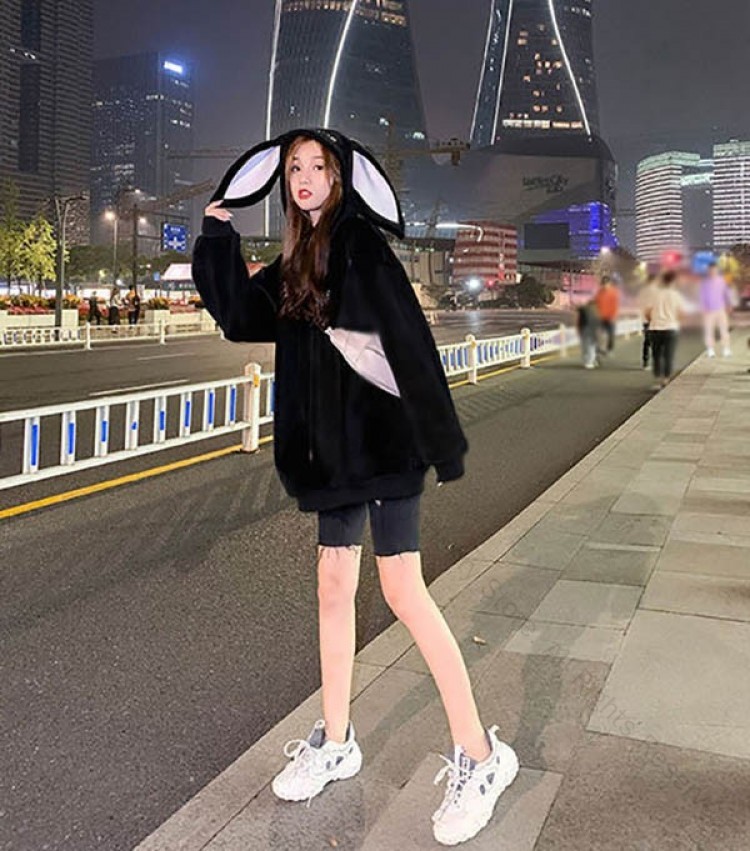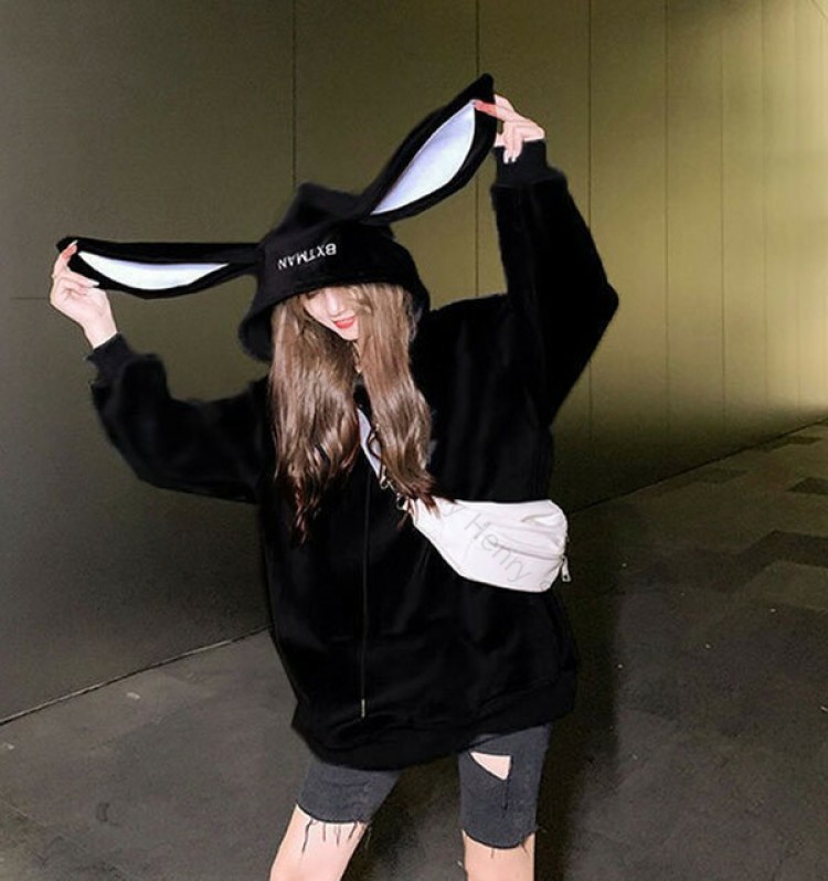 うさ耳パーカー レディース うさぎ か トップス パーカー 続々入荷中 ピンク ブラック ベージュ M L 2L(XL) 3L(2XL)