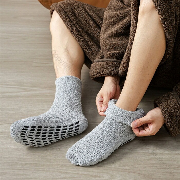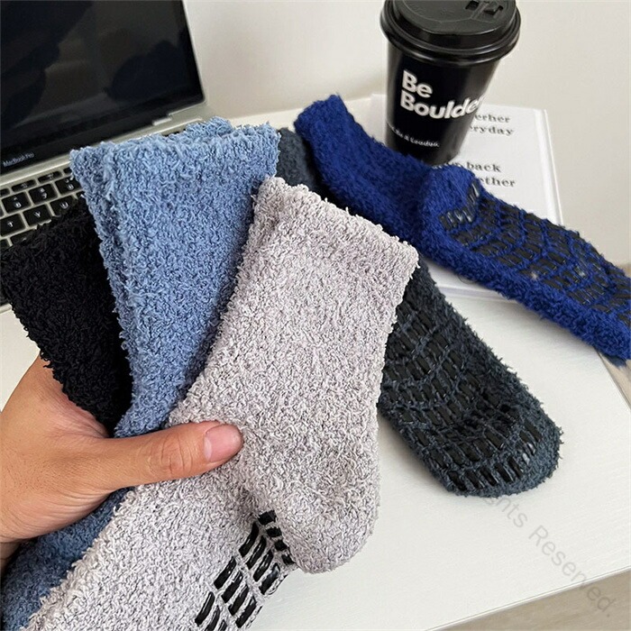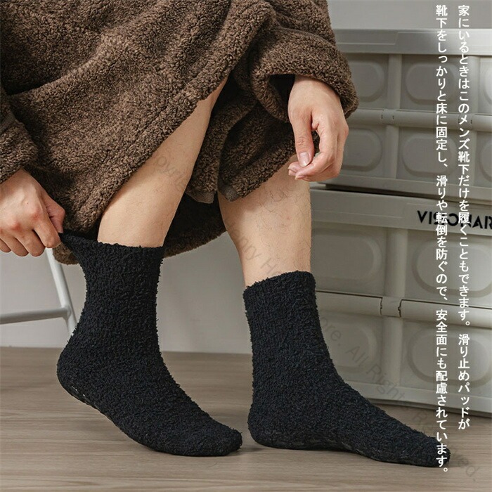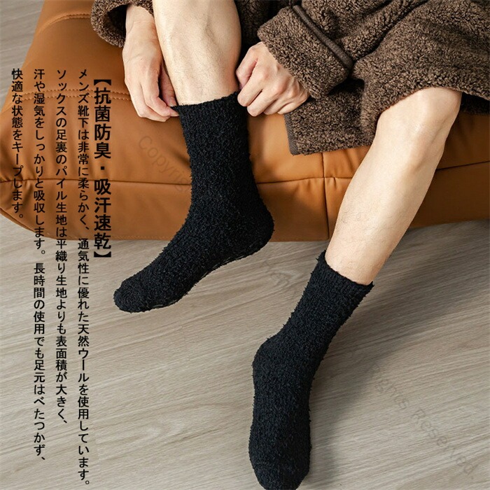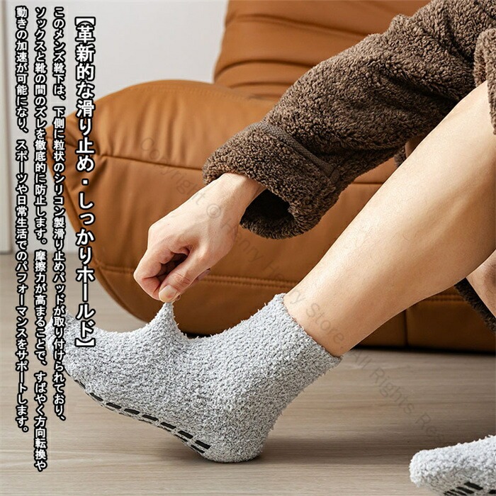靴下 メンズ 冬 厚手 暖かい ソックス 滑り止め付き 防寒 保温 肌馴染み 抗菌消臭 伸縮性 毛が抜けない ズレ防止 蒸れない ルームソックス 快適仕様で長時間使用に最適なメンズ冬 締め付け感がない