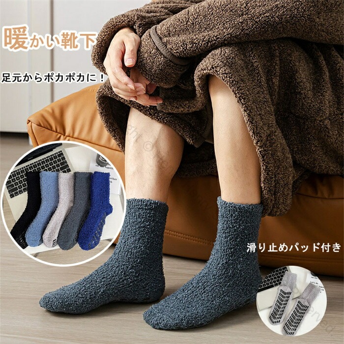 靴下 メンズ 冬 厚手 暖かい ソック インナー 下着 ナイトウエア 早い者勝ち ライドグレー ダークグレー ライドブルー ダークブルー ブラック 5点セット