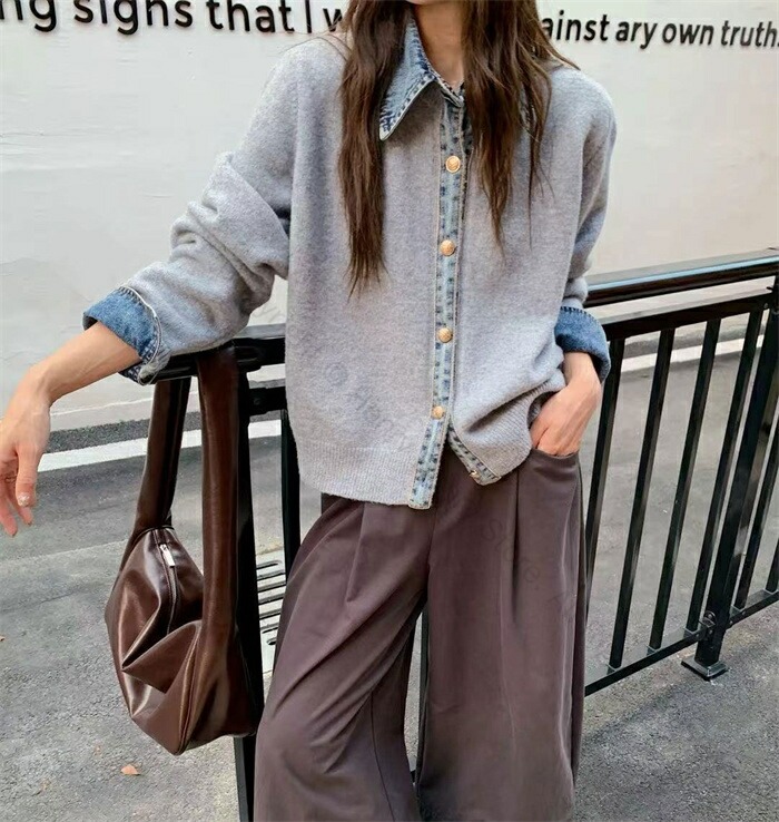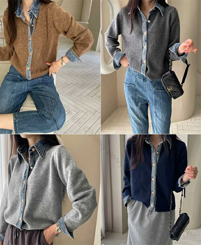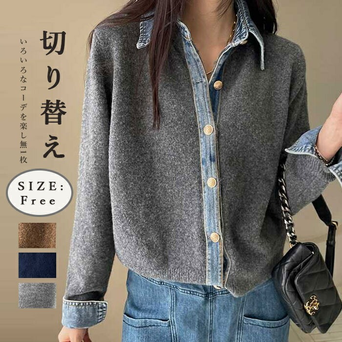 アウター 切り替え ニットカーディガン レディースファッション 早い者勝ち ダークグレー ライトグレー ネイビー コーヒー色