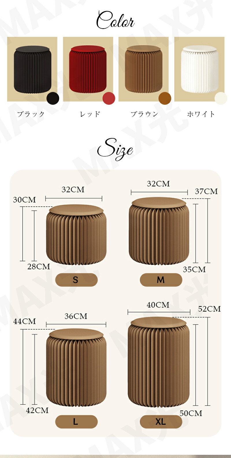 折りたたみチェア 折りたたみ椅子 紙製 ブラック(同色クッション付き) レッド(同色クッション付き) ブラウン(同色クッション付き) ホワイト(同色クッション付き) 30cm 37cm 44cm 52cm