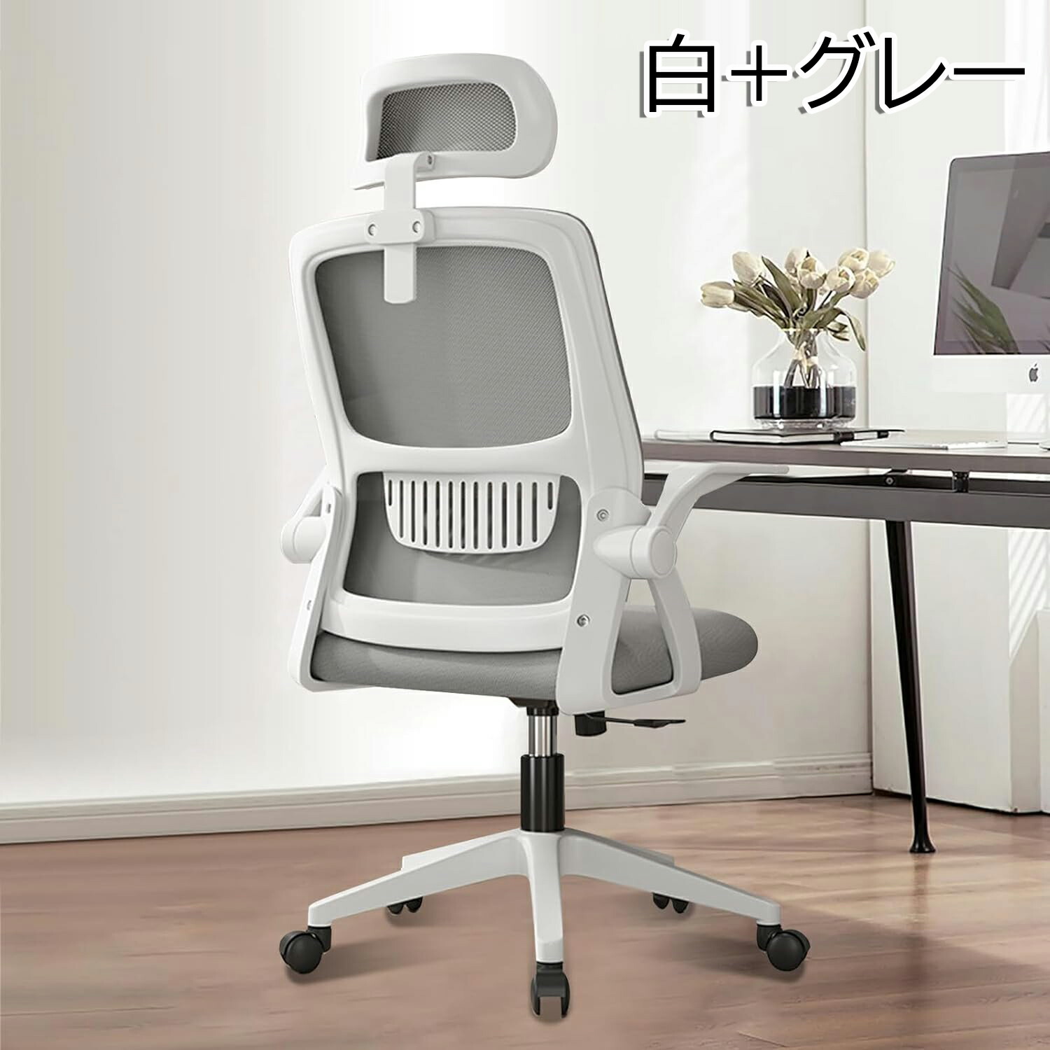 オフィスチェア 椅子 テレワーク 疲れ 白+黒 白+グレー 黒