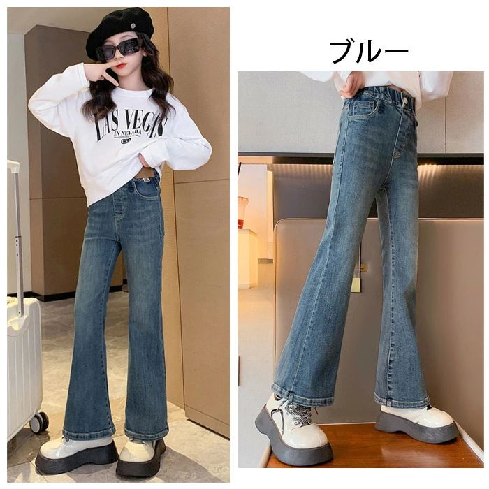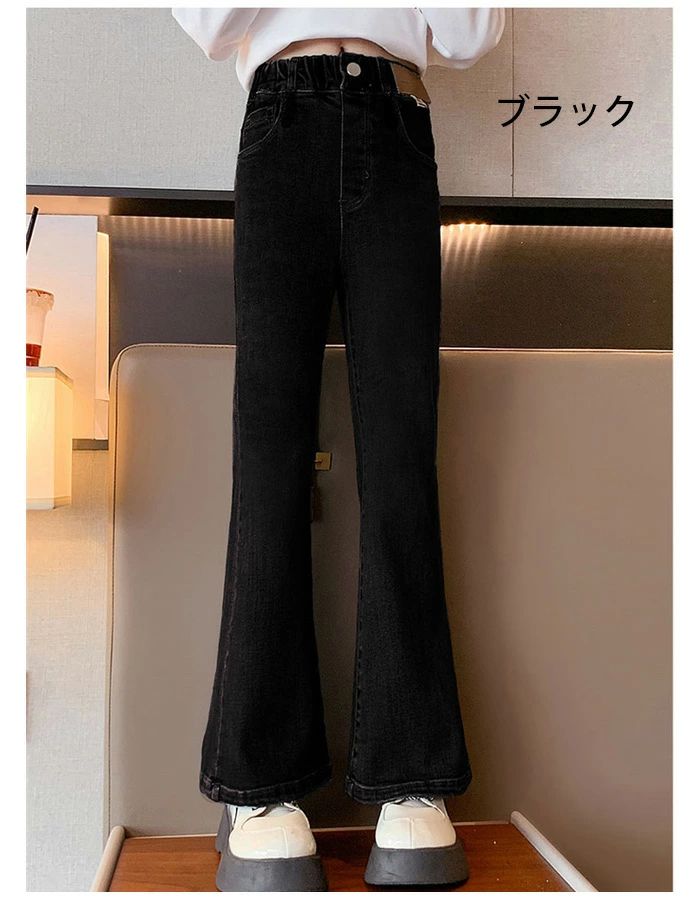 子供服 女の子 デニムパンツ お洒落 キッズ ボトムス パンツ 新作 ブラック(裏起毛なし) ブルー(裏起毛なし) ブラック(裏起毛あり) ブルー(裏起毛あり) 120 130 140 150 160 170