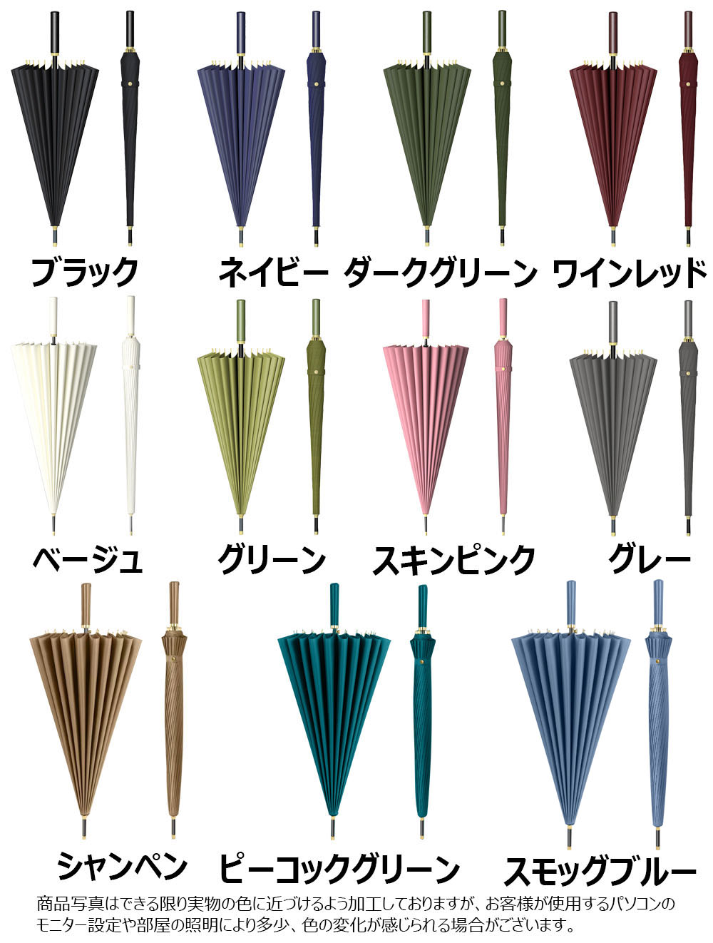傘 メンズ レディース 24本骨 ワン バッグ 小物 ブランド雑貨 早い者勝ち ブラック ネイビー ダークグリーン ワインレッド ベージュ グリーン スキンピンク グレー シャンペン ピーコックグリーン スモッグブルー