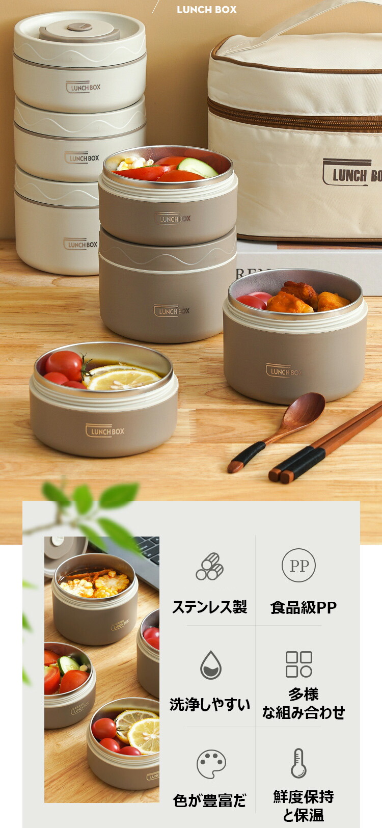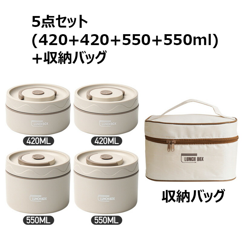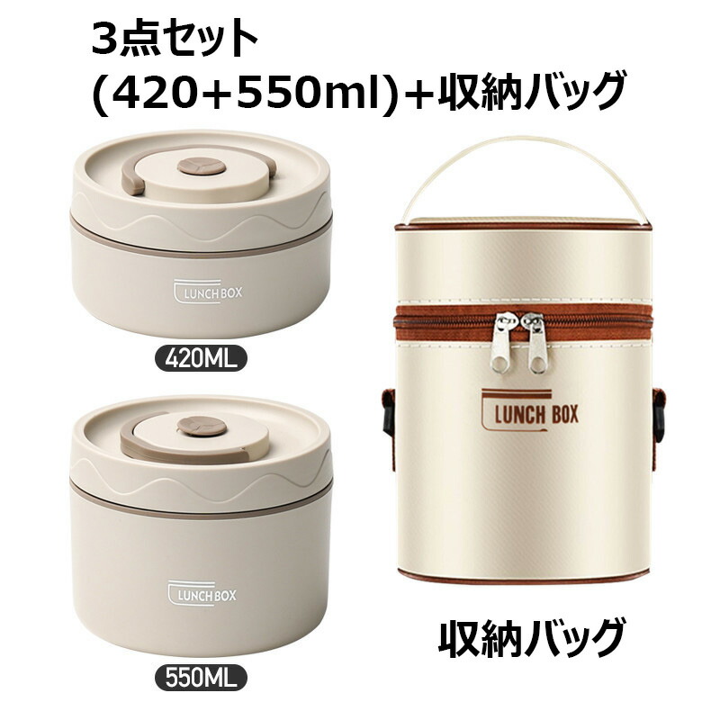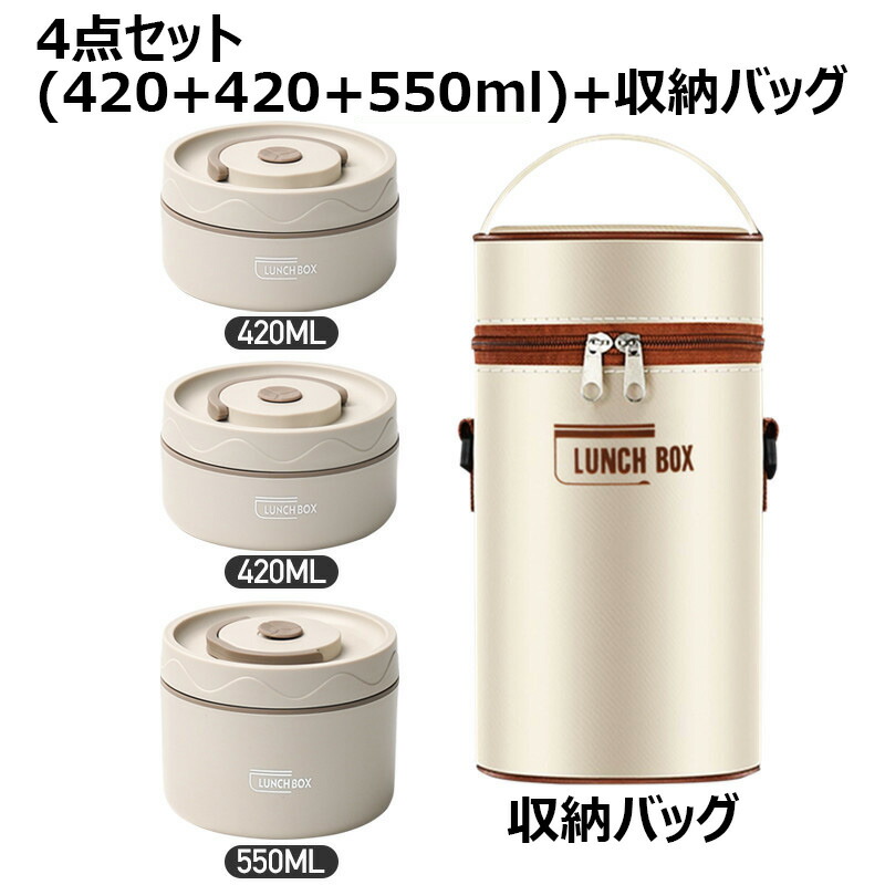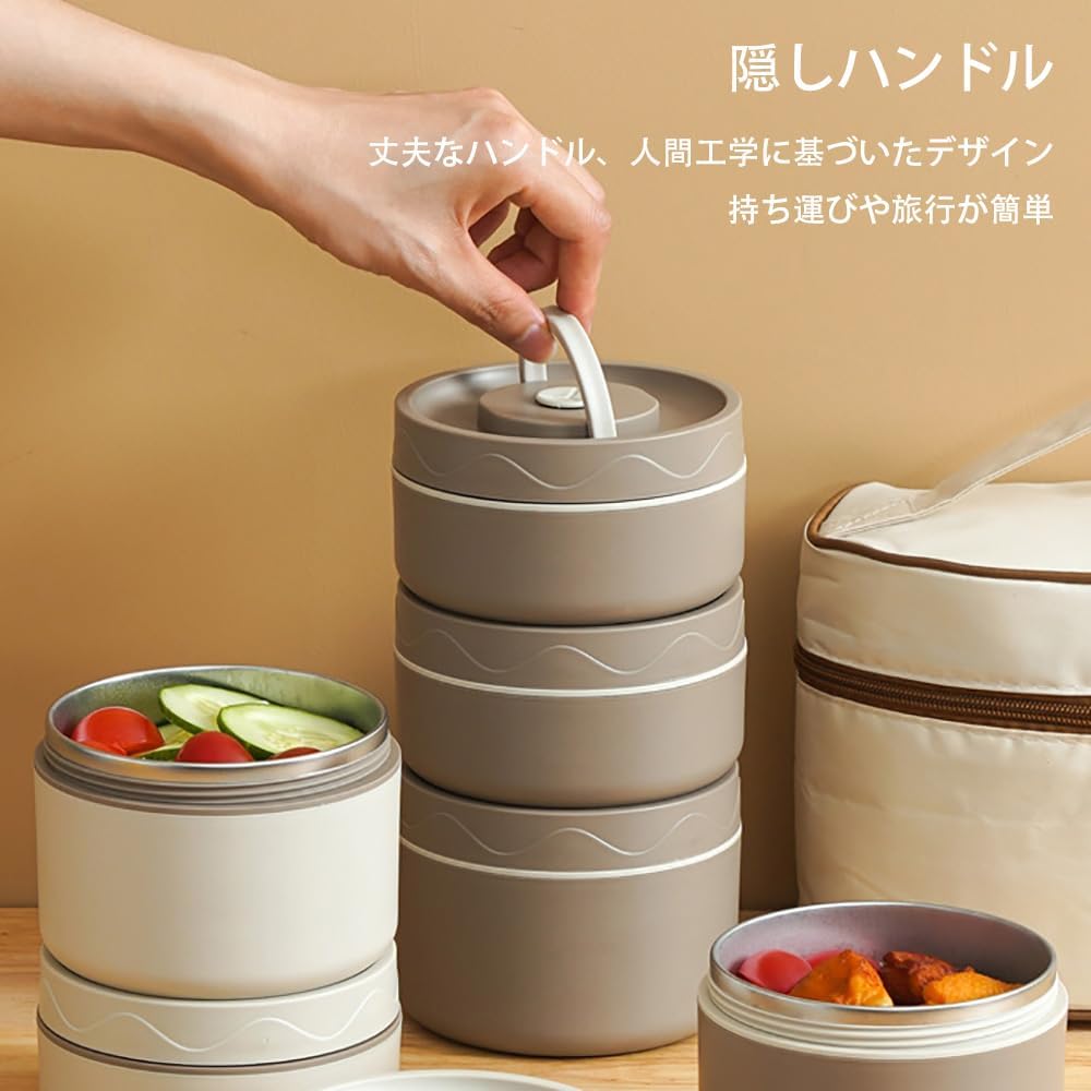 保温弁当箱 保温バッグ付き 断熱弁当箱 キッチン用品 食器 調理器具 通販 ベージュ ブラウン ブルー 2段(3点セット) 3段(4点セット) 4段(5点セット)