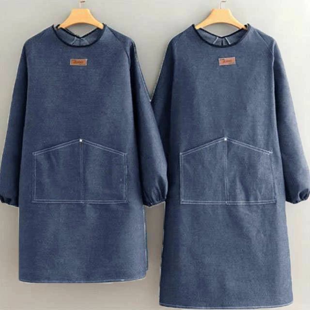 家庭用 スモック ロング 冬用エプロン 配膳用品 キッチンファブリック エプロン 三角巾 エプロン 超目玉商品 着丈100cm(通常) 着丈110cm(大きめ)