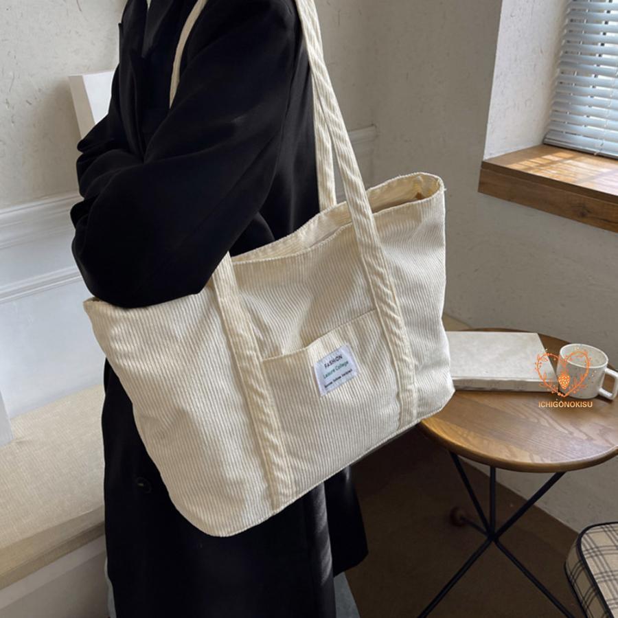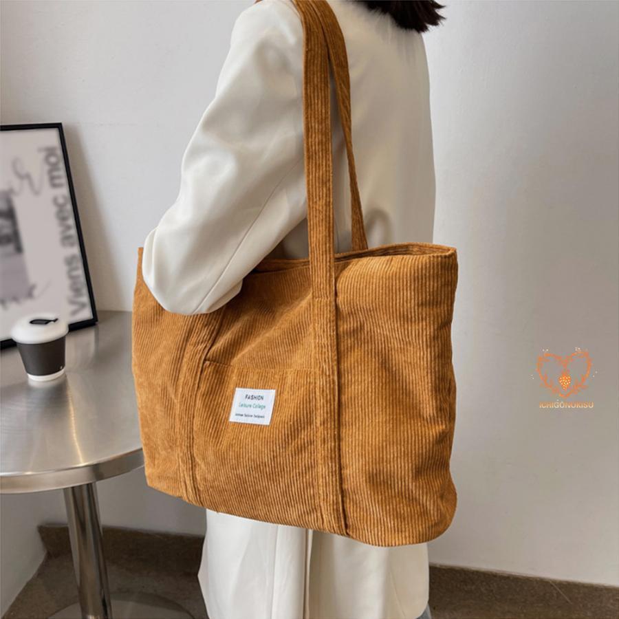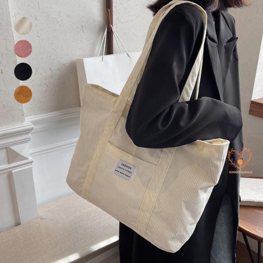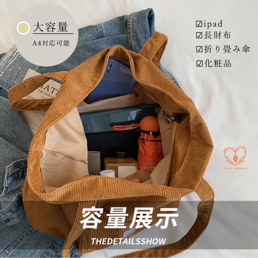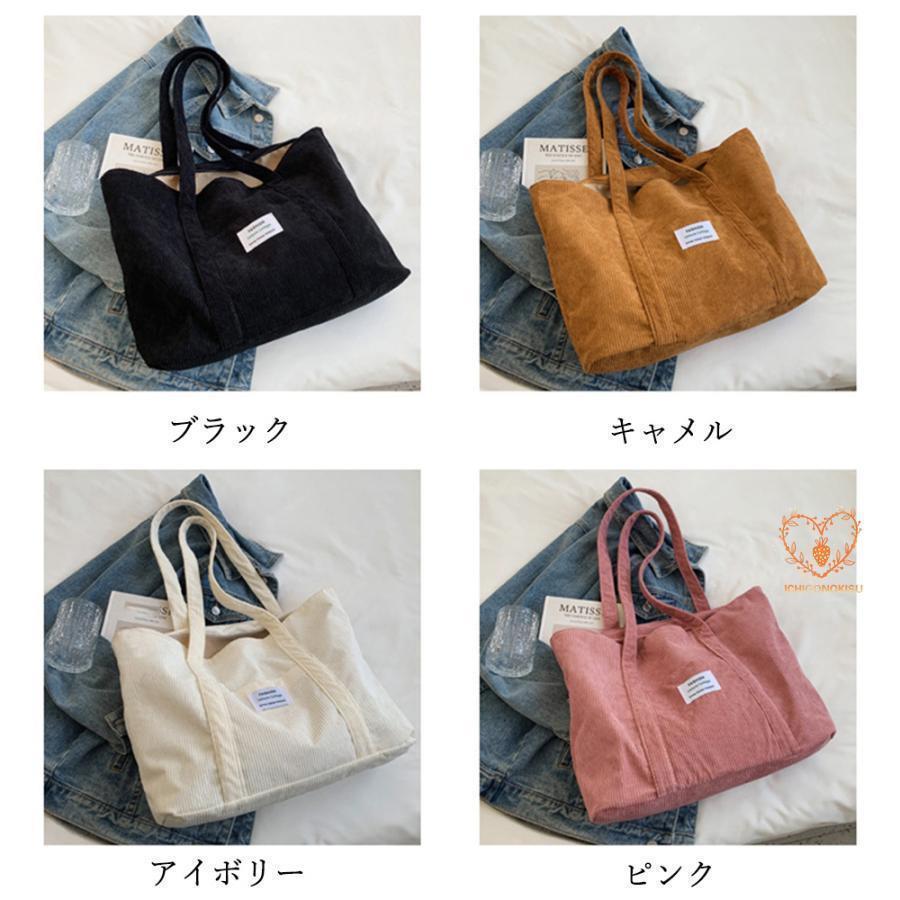コーデュロイ トートバッグ 大容量カバ バッグ レディースバッグ トートバッグ 早い者勝ち ブラック アイボリー キャメル ピンク