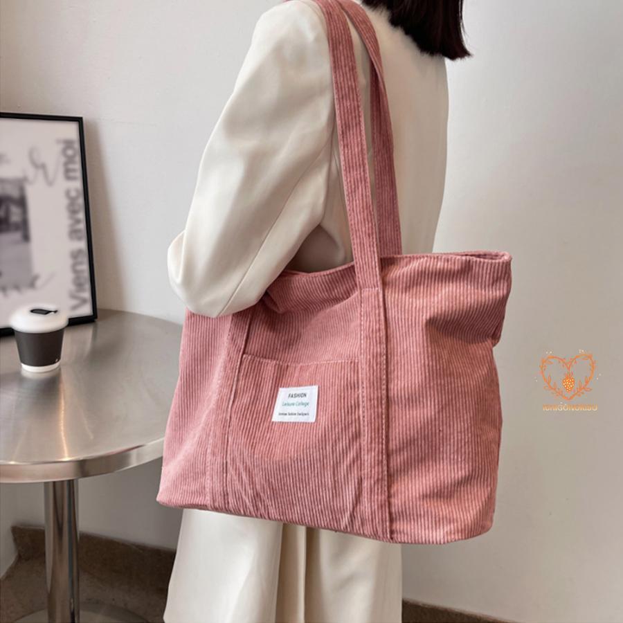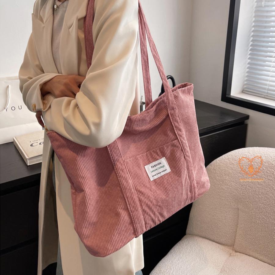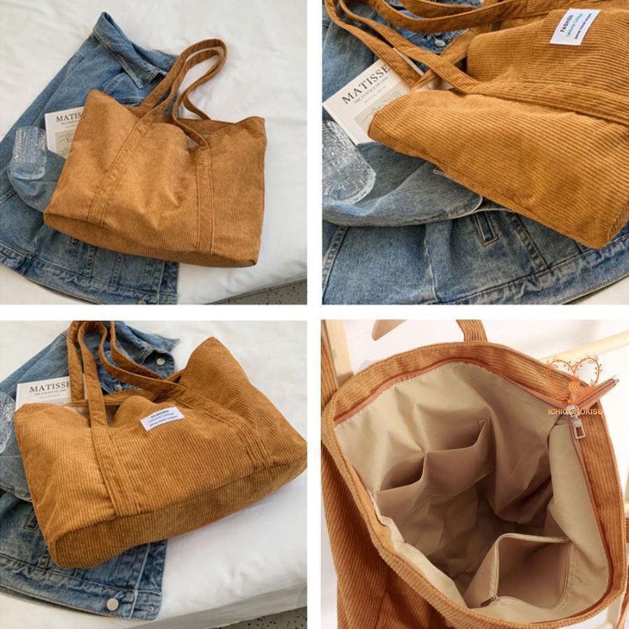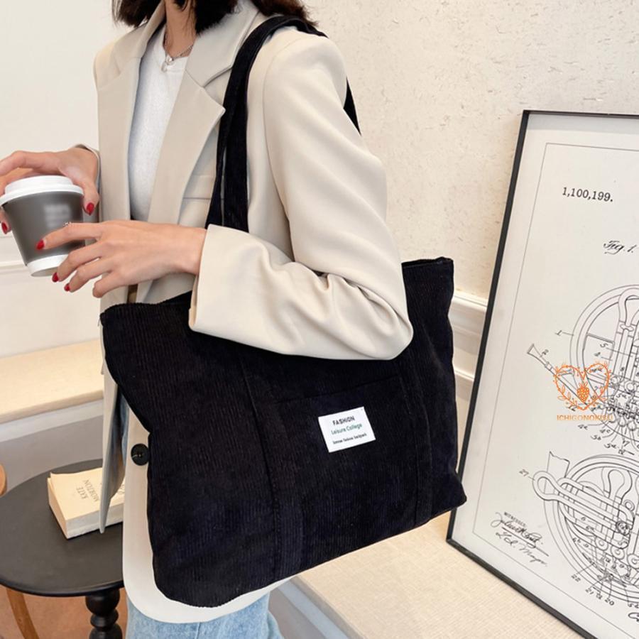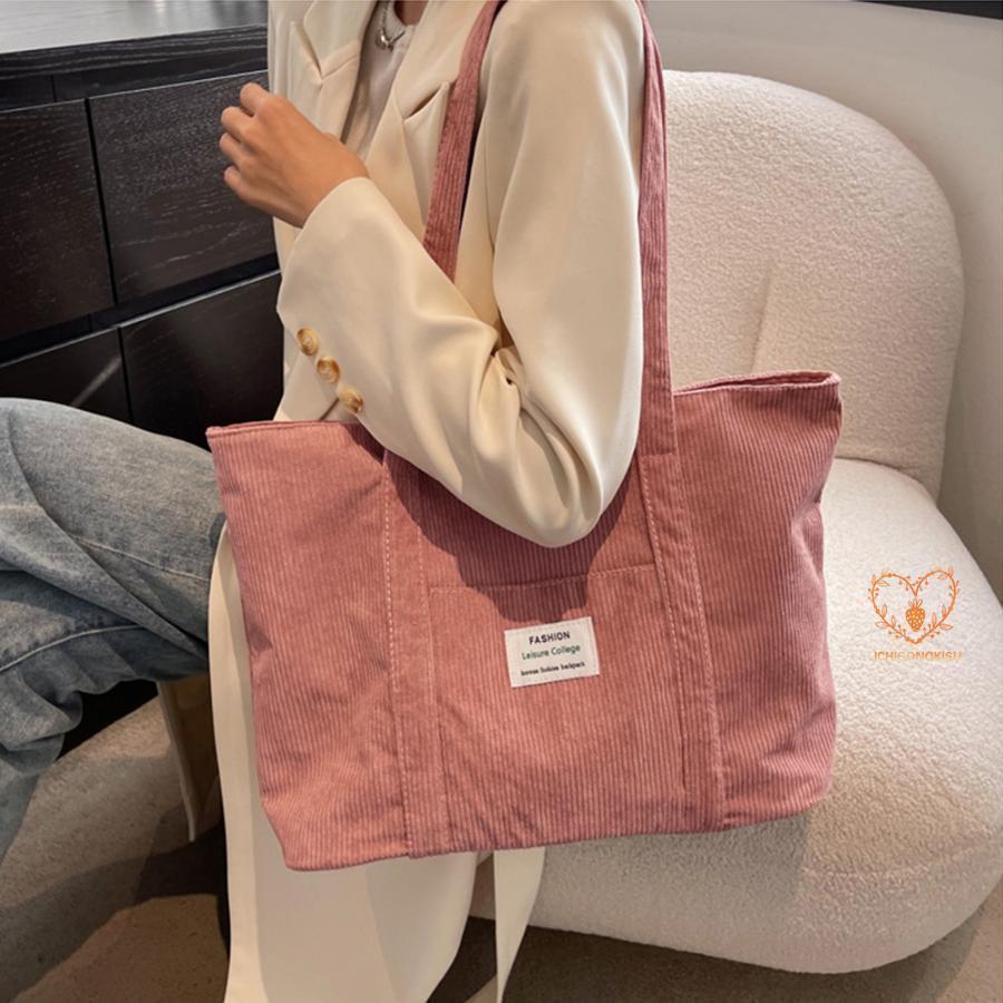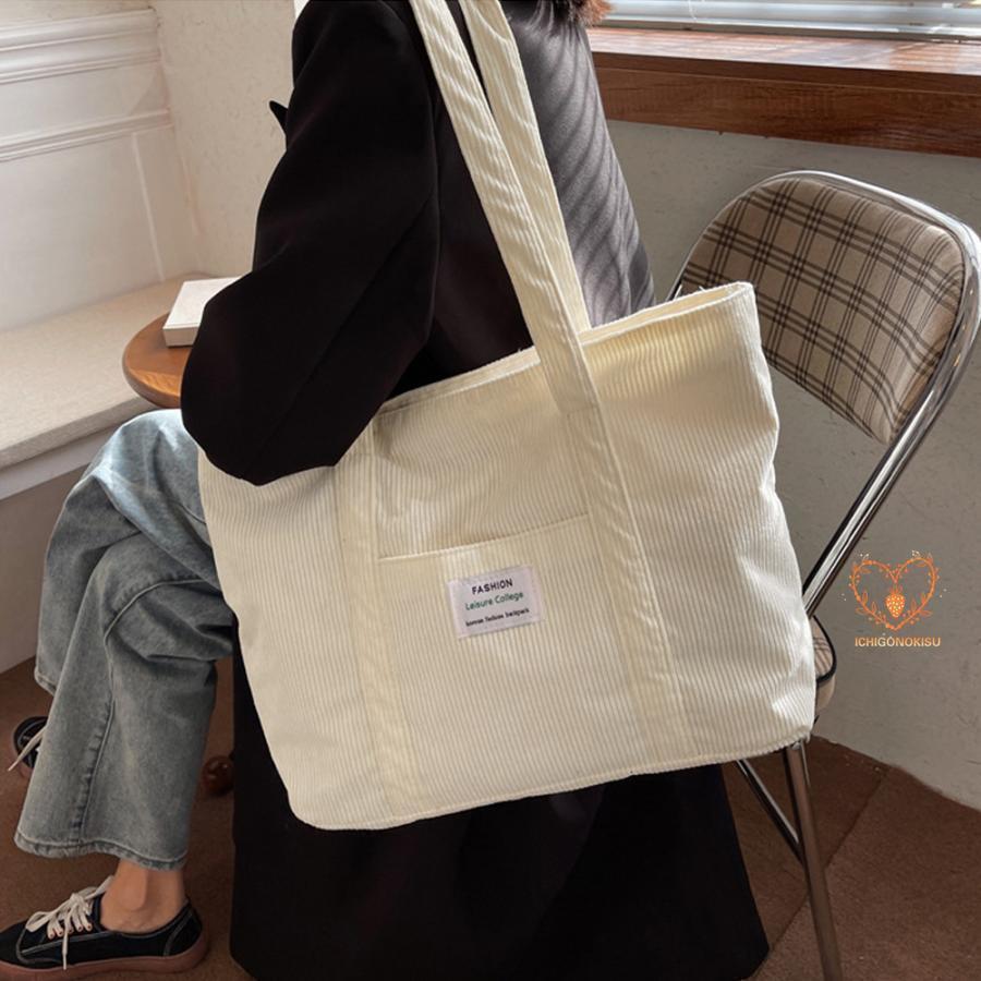 コーデュロイ トートバッグ 大容量カバ バッグ レディースバッグ トートバッグ 早い者勝ち ブラック アイボリー キャメル ピンク