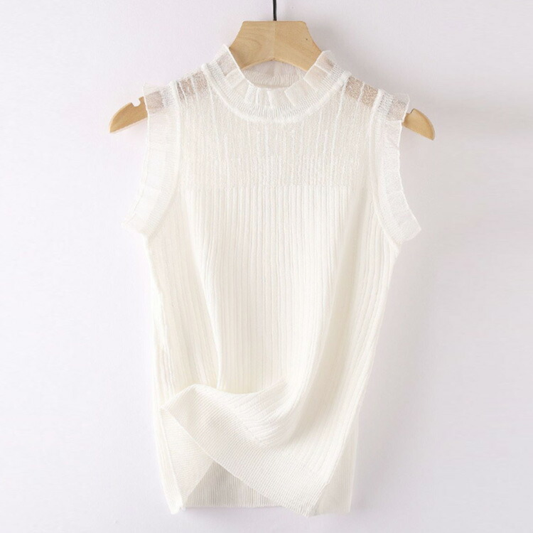 薄手 レース フリル襟 タンクトップ レディースファッション 豊富 ブラック ホワイト ベージュ S M L XL 2XL 3XL 4XL