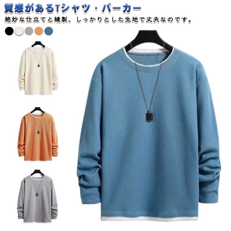 メンズ 長袖 レイヤード風 スウェット メンズファッション 新登場! ライトグレー ブルー ブラック ベージュ オレンジ M L XL 2XL 3XL 4XL 5XL