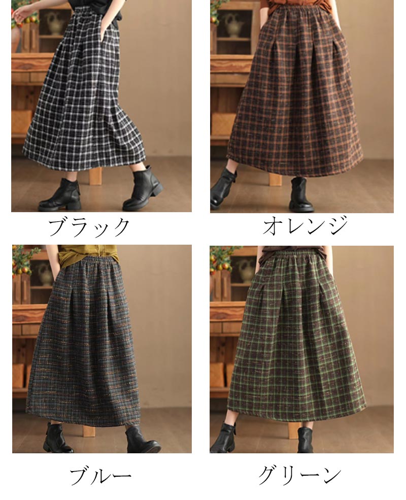 スカート チェック柄 秋冬 マキシ丈 レディースファッション 特集 ブラック オレンジ ブルー グリーン
