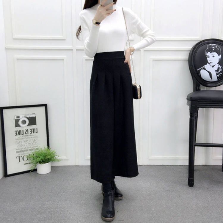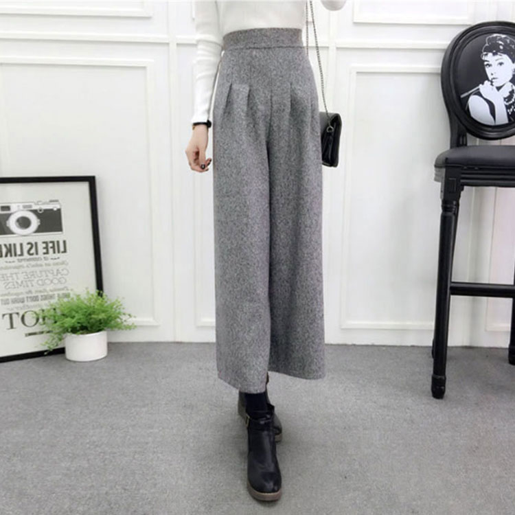 ガウチョパンツ ウール混 パンツ 9分 ボトムス パンツ 続々登場 ライトグレー ダークグレー ブラック S M L XL 2XL