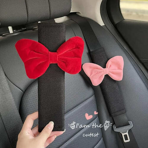 シートベルトカバー リボン カーインテ ピンク レッド