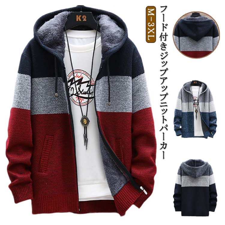 カジュアル 厚手 ジャケット ジップア トップス ニット セーター 早い者勝ち レッド ネイビー ブルー M L XL 2XL 3XL