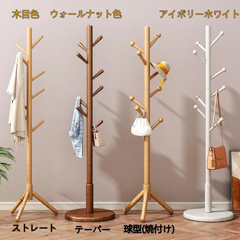 木製 コートハンガー ハンガーラック 木目色 ウォールナット色 アイボリーホワイト 3本の脚と8つのフック ディスク8フック