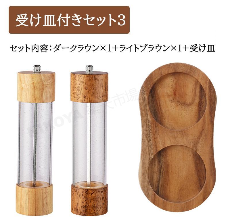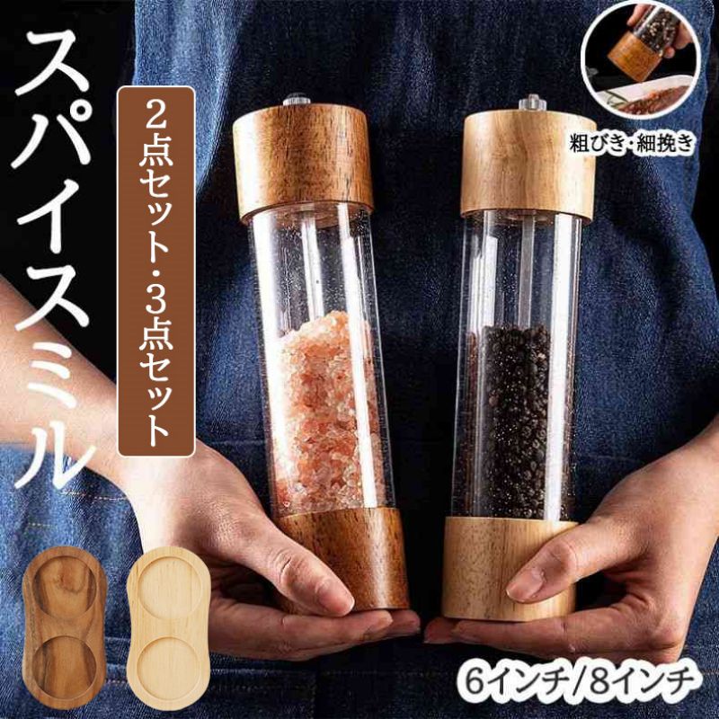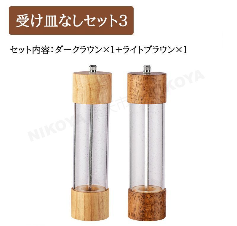 お得な3点セット ペッパーミル 木製 キッチン用品 食器 調理器具 特集 受け皿なしセット1(L) 受け皿なしセット2(D) 受け皿なしセット3(L+D) 受け皿付きセット1(L) 受け皿付きセット2(D) 受け皿付きセット3(L+D) 6インチ 8インチ