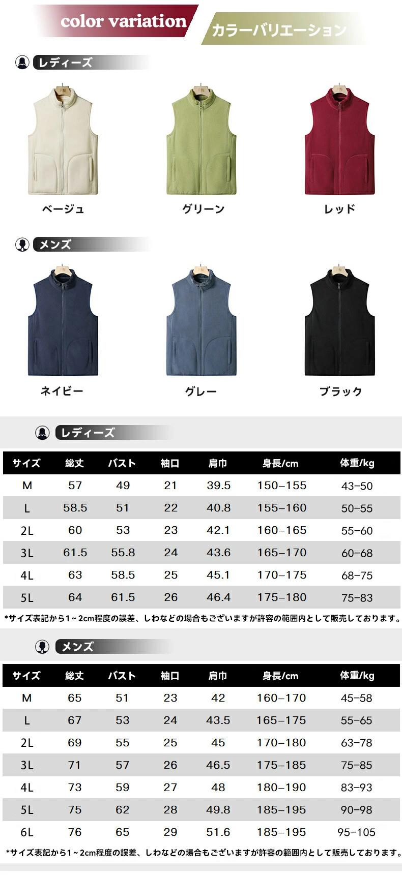 ベスト 防寒ベスト フィッシングベスト トップス ベスト ジレ 早い者勝ち ベージュ(女性) グリーン(女性) レッド(女性) ネイビー(男性) グレー(男性) ブラック(男性) M L 2L 3L 4L 5L 6L