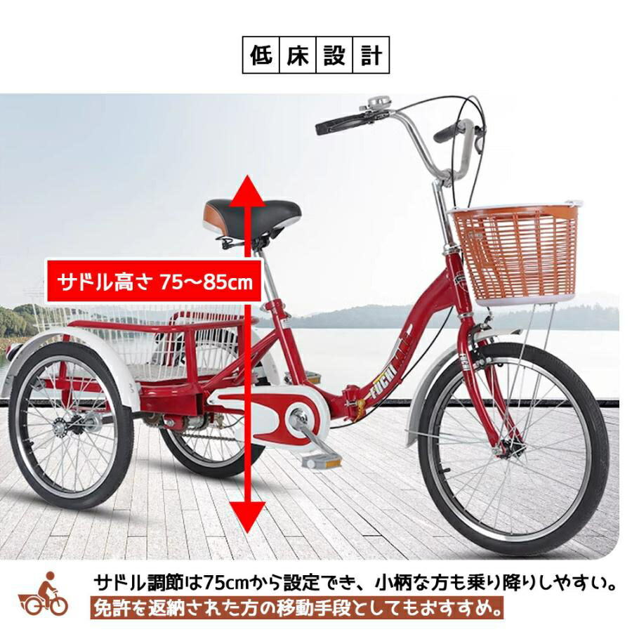 三輪車 自転車 小型三輪車 お年寄り向 レッド ブラウン ブルー