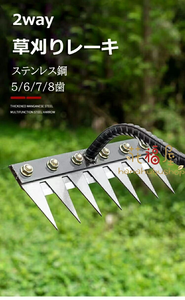 草刈りレーキ ガーデンレーキ ステンレ 五歯 六歯 七歯 八歯 五歯+木柄 六歯+木柄 七歯+木柄 八歯+木柄