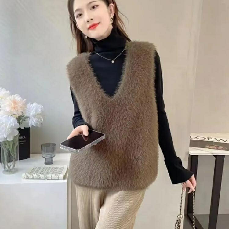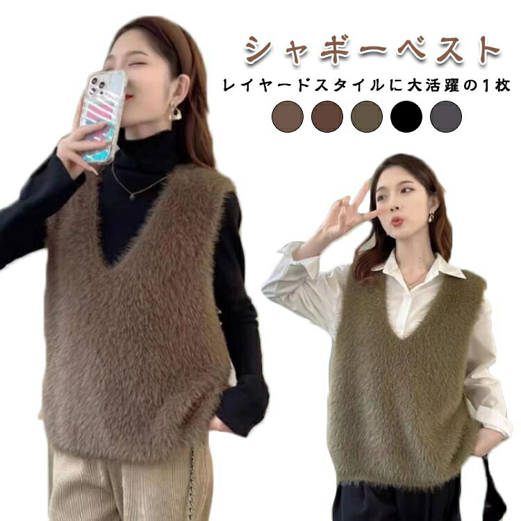 シャギーニット Vネック ニットベスト レディースファッション 早い者勝ち ブラック グレー ブラウン ライトブラウン グリーン S(おすすめ40-47.5kg) M(おすすめ47.5-55kg) L(おすすめ55-60kg) XL(おすすめ60-65kg) 2XL(おすすめ65-70kg) 3XL(おすすめ70-72.5kg)
