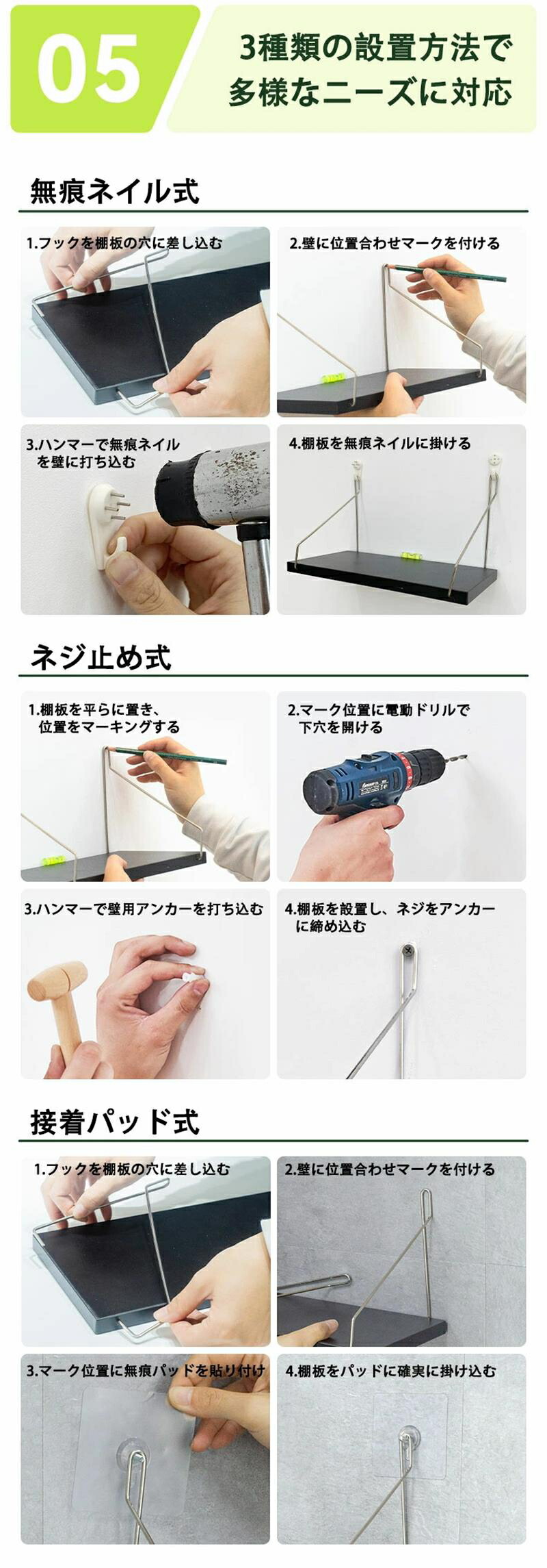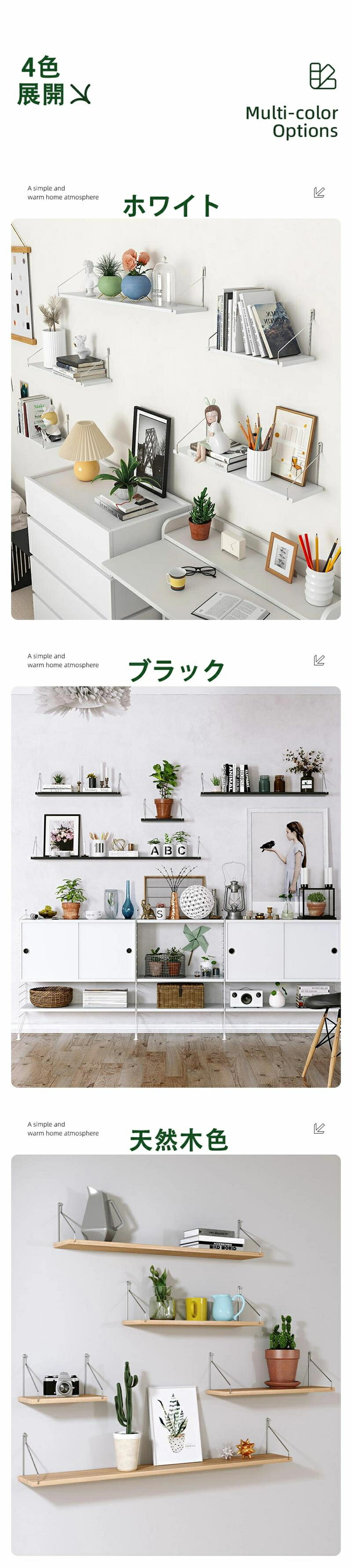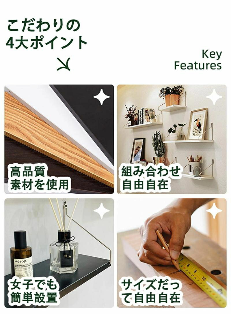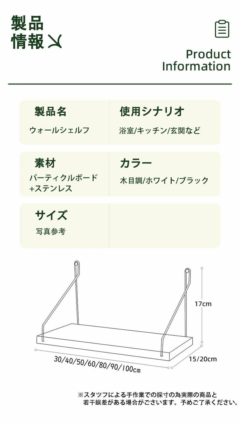 ウォールシェルフ 賃貸 壁 棚 穴あけ ホワイト ブラック 天然木色 30cm 40cm 50cm 60cm 80cm 90cm 100cm