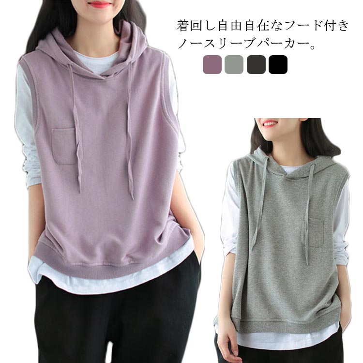 ベスト レディース パーカー ノースリ トップス ベスト 豊富な品揃え ライトグレー ダークグレー パープル ブラック M L XL 2XL