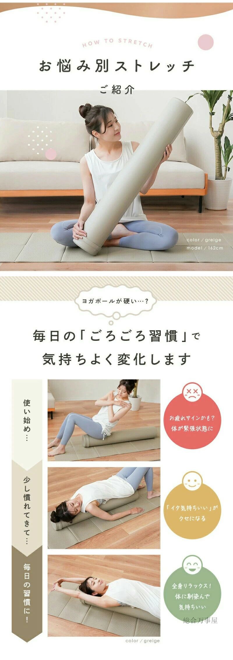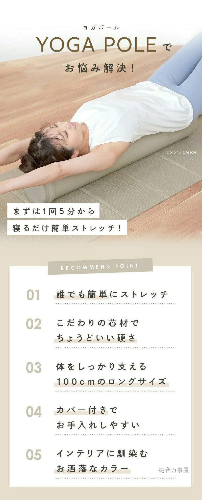 ヨガポール ロング ショート ハーフ ホワイト ネイビー ベージュ ブラック