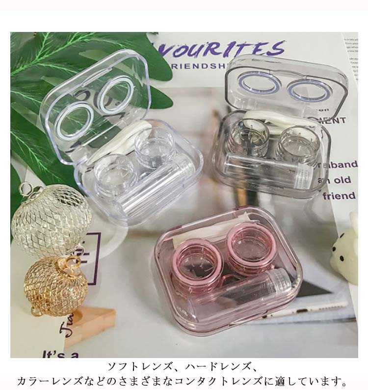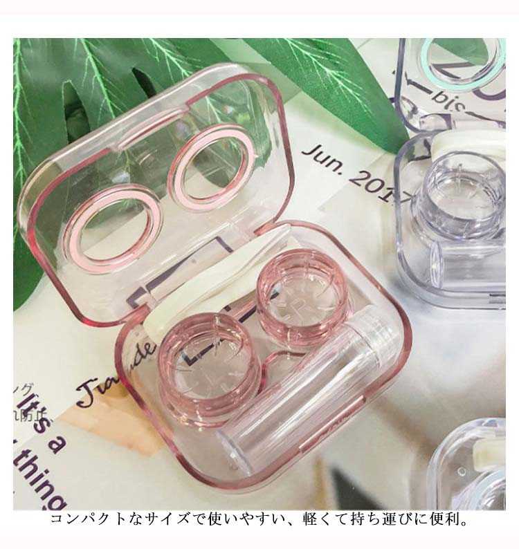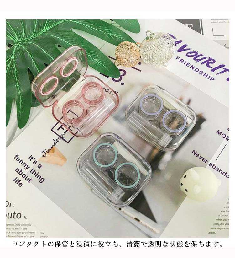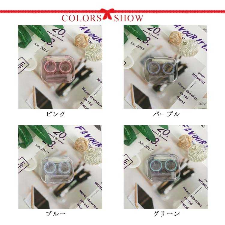 コンタクト 収納ケース 透明 かわいい ピンク パープル ブルー グリーン