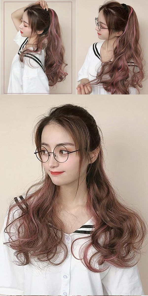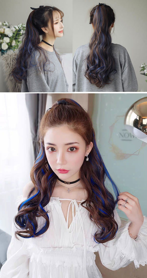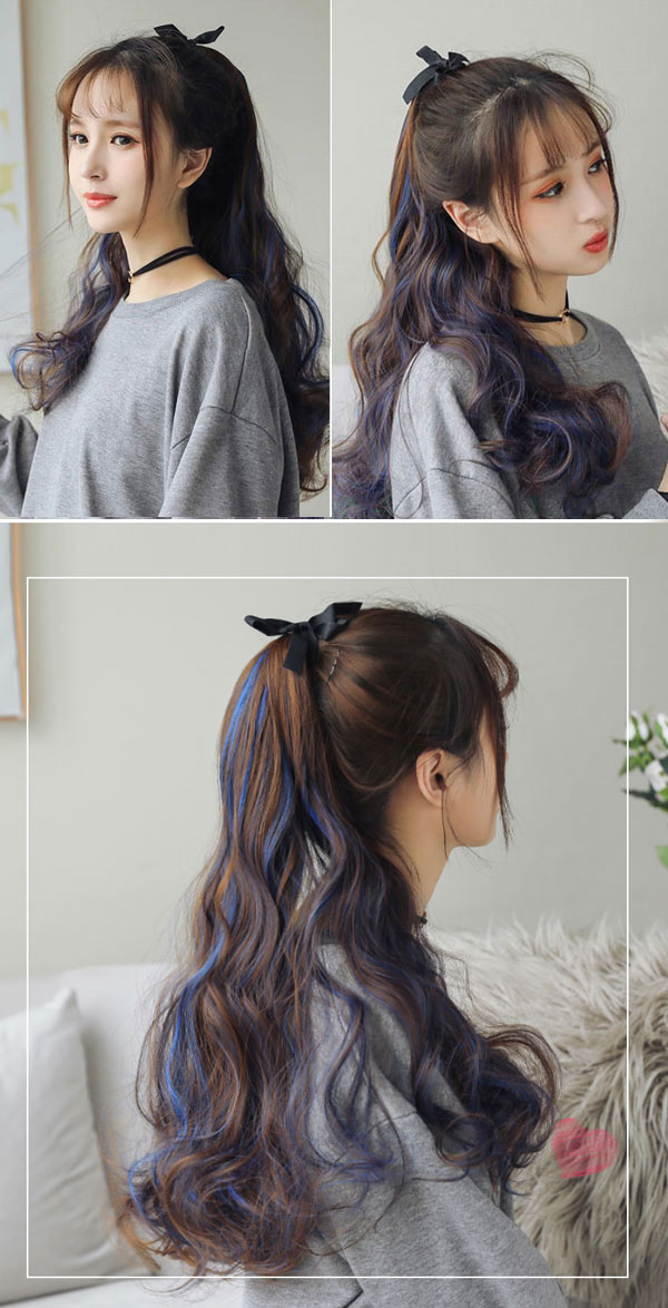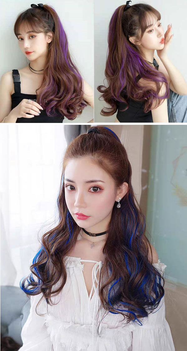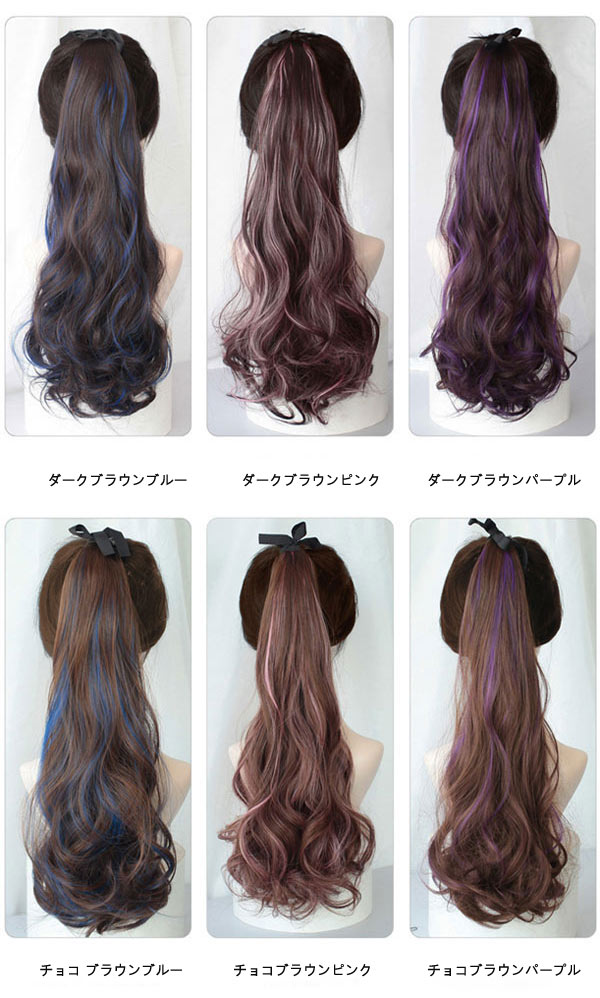 ポニーテール カラー つけ毛 エクステ ウィッグ つけ毛 ポイントウィッグ 豊富な品揃え ダークブラウンブルー ダークブラウンピンク ダークブラウンパープル チョコ ブラウンブルー チョコ ブラウンピンク チョコ ブラウンパープル
