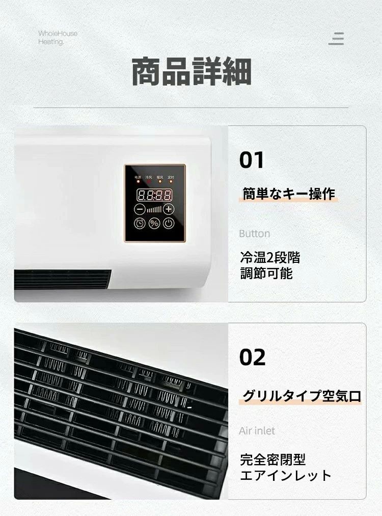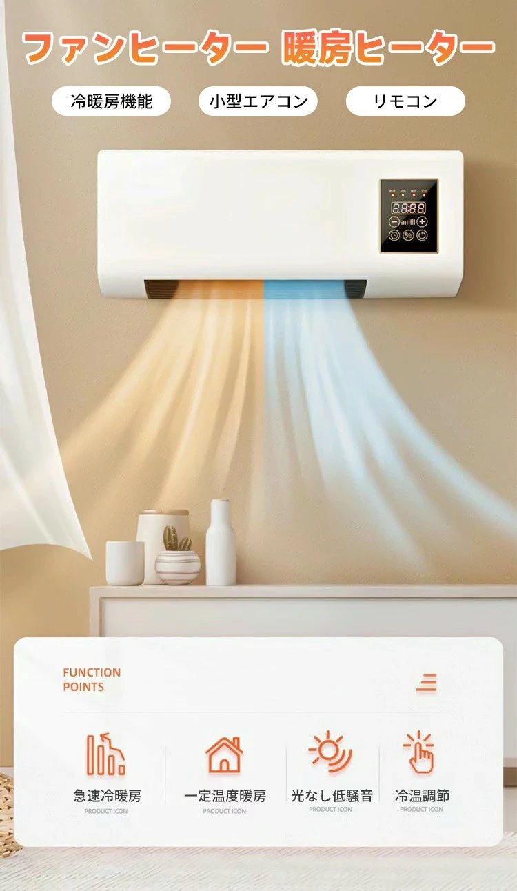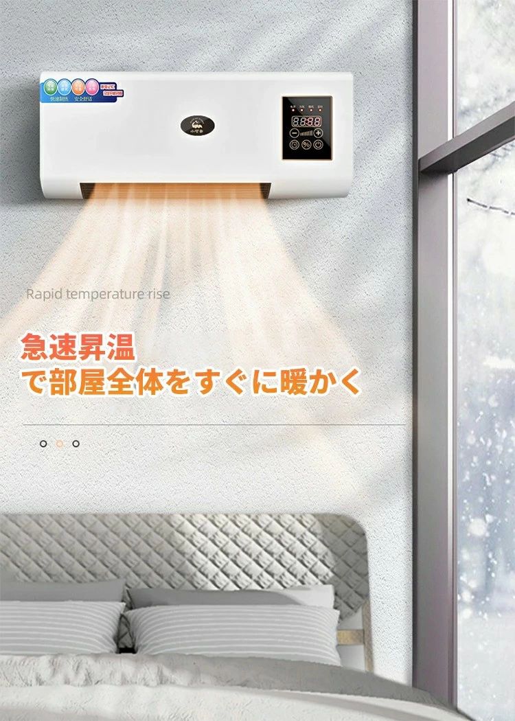 壁掛け式暖房器具 電気ファンヒーター ホワイト ホワイト&花