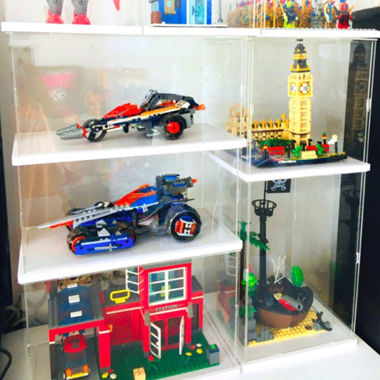 アクリルケース 大人 ケース 厚さ約10mm ブロック 黒 白 建物 フィギュア用 インテリア ディスプレイケース 台座付き