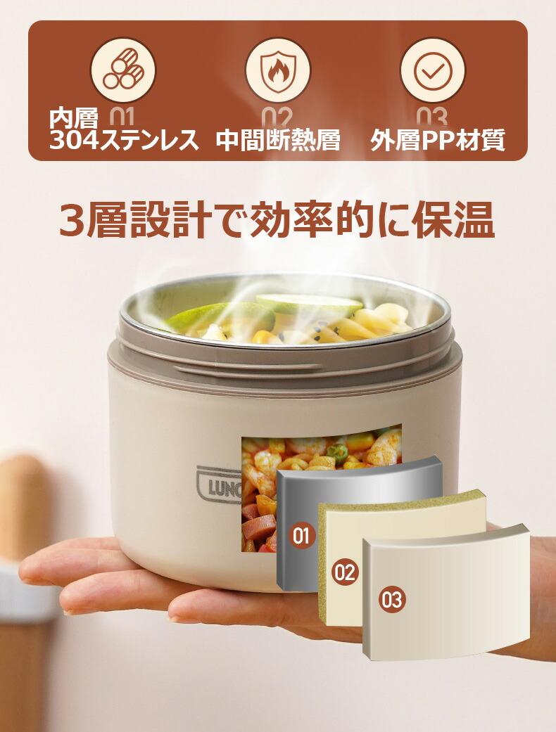保温弁当箱 保温バッグ付き 断熱弁当箱セット 多層 保温ランチジャー 漏れ防止 真空断熱スープランチセット ランチボックス 超高効率保温3時間 フードコンテナ 大容量 2段 4段 420ml 5 3段