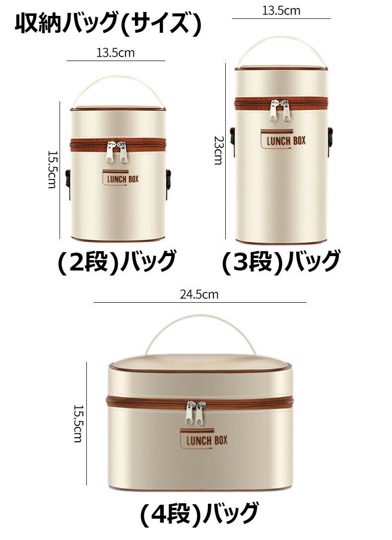 保温弁当箱 保温バッグ付き 断熱弁当箱 キッチン用品 食器 調理器具 通販 ベージュ ブラウン ブルー 2段(3点セット) 3段(4点セット) 4段(5点セット)